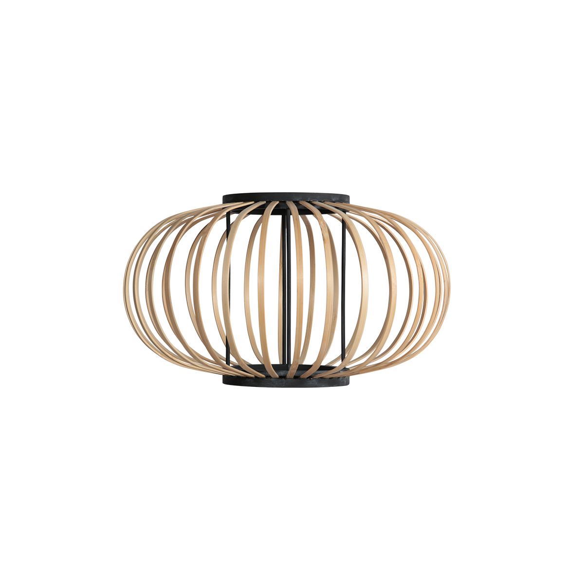 Deze bamboe lampenkap van 31 cm breed en 18 cm hoog heeft een open, fijne bamboe structuur die een mooi patroon van licht en schaduw in de ruimte creëert. De combinatie van bamboe en het zwarte detail aan de bovenzijde geeft de kap een modern, natuurlijk karakter.