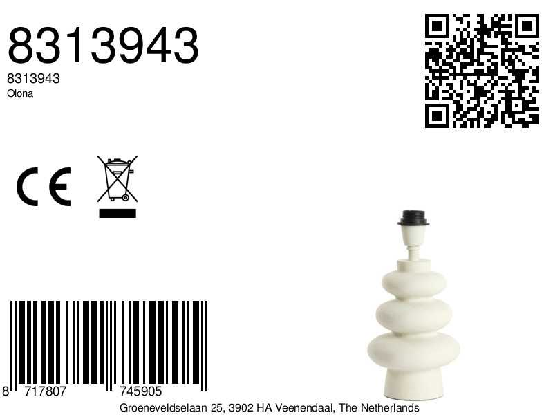 Be the first to review “Bolvormige witte lampenvoet Light & Living Olona”