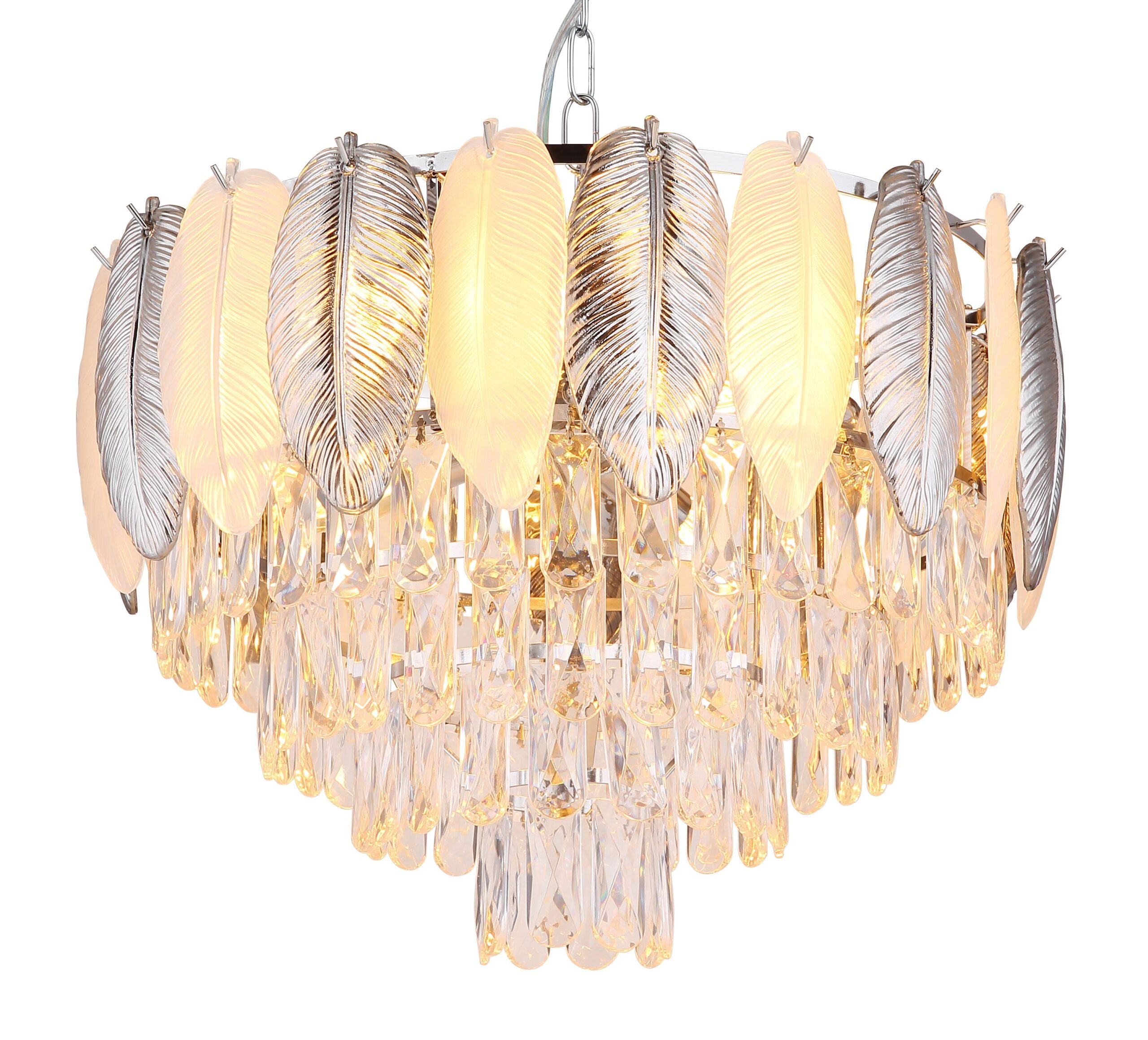 De Dalton kroonluchter chroom is een schitterende traditionele lamp die direct de aandacht trekt met zijn ronde ontwerp en stijlvolle decoraties van kristallen en bladeren. Het lampenlichaam is vervaardigd uit hoogwaardig chroomgeplateerd metaal, wat zorgt voor een prachtige glanzende afwerking. De kap is versierd met heldere acrylkristallen, aangevuld met rookkleurige acrylelementen die een satijnen uitstraling hebben. Deze zorgvuldige combinatie van materialen en kleuren creëert een unieke ambiance en een bijzonder licht in uw ruimte.