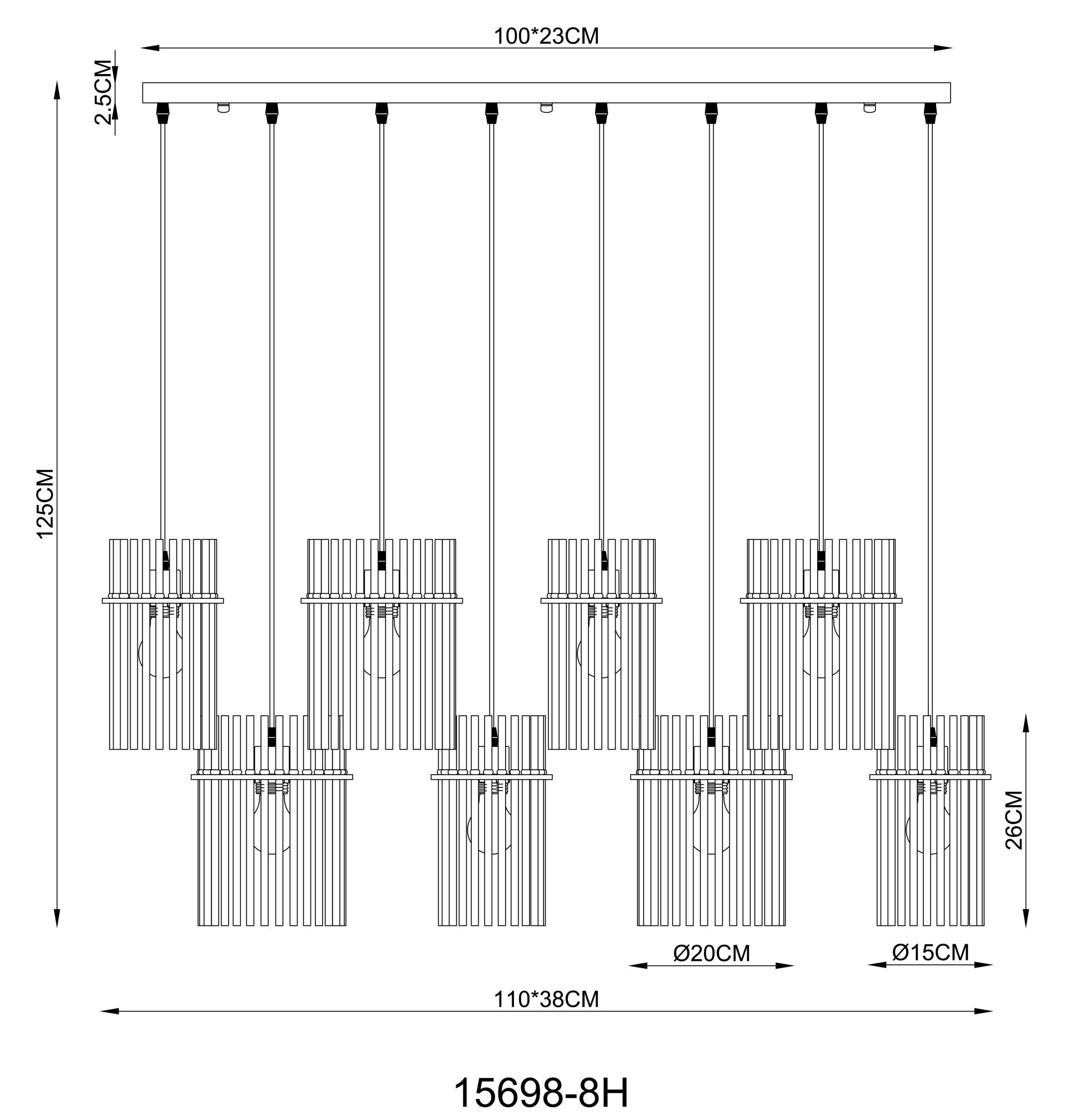 Maak kennis met de elegante hanglamp van GORLEY, een tijdloos ontwerp dat uw verlichting naar een hoger niveau tilt. Deze rechthoekige lamp is voorzien van acht hangers, harmonieus gemonteerd op een sterk frame. De lampenkappen zijn gemaakt van zorgvuldig gewonden glazen staven in een ronde vorm. Het zwarte metalen lichaam biedt een stijlvolle basis, terwijl de rookkleurige glazen staven die door het frame heen lopen een sfeervol schaduwspel creëren.