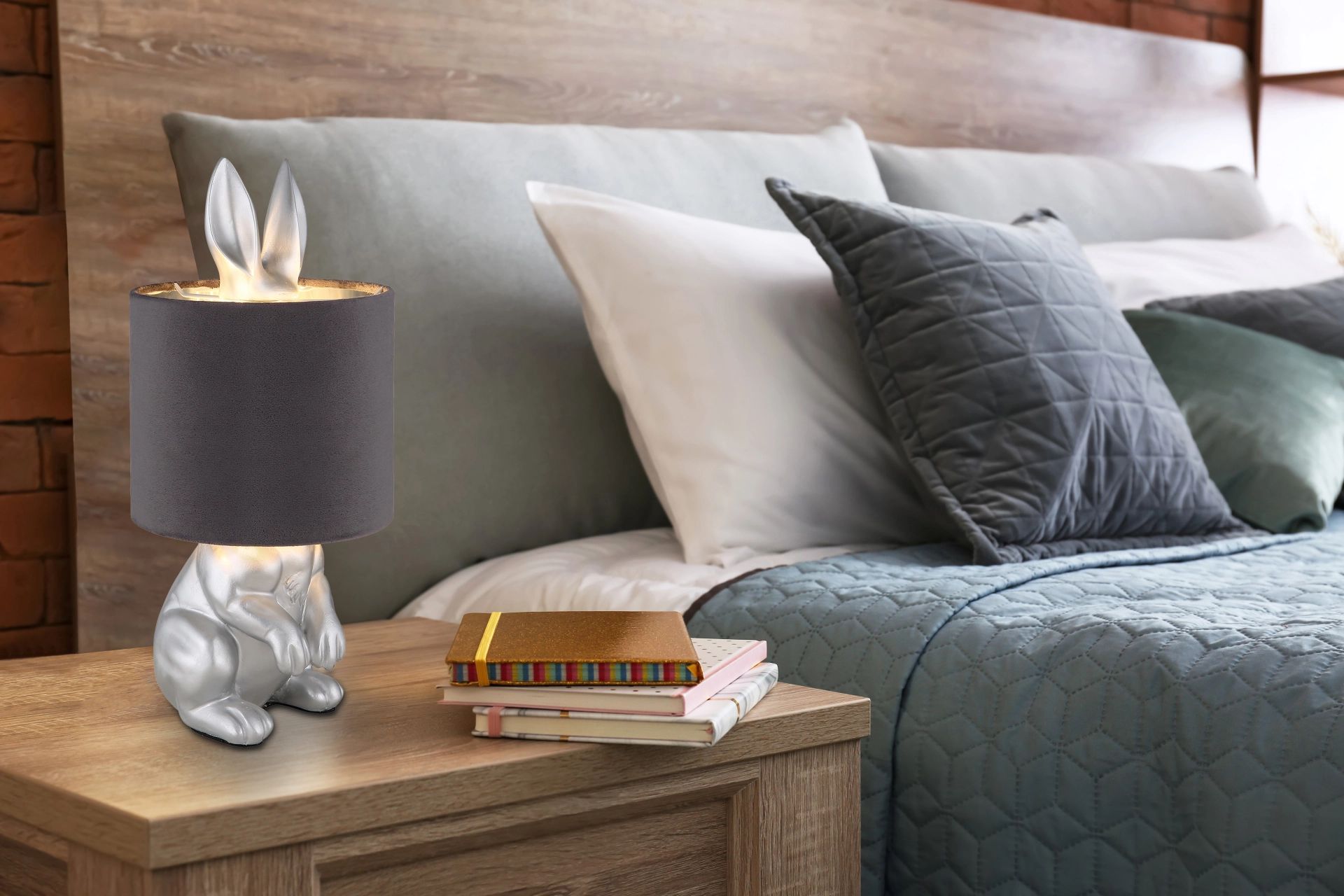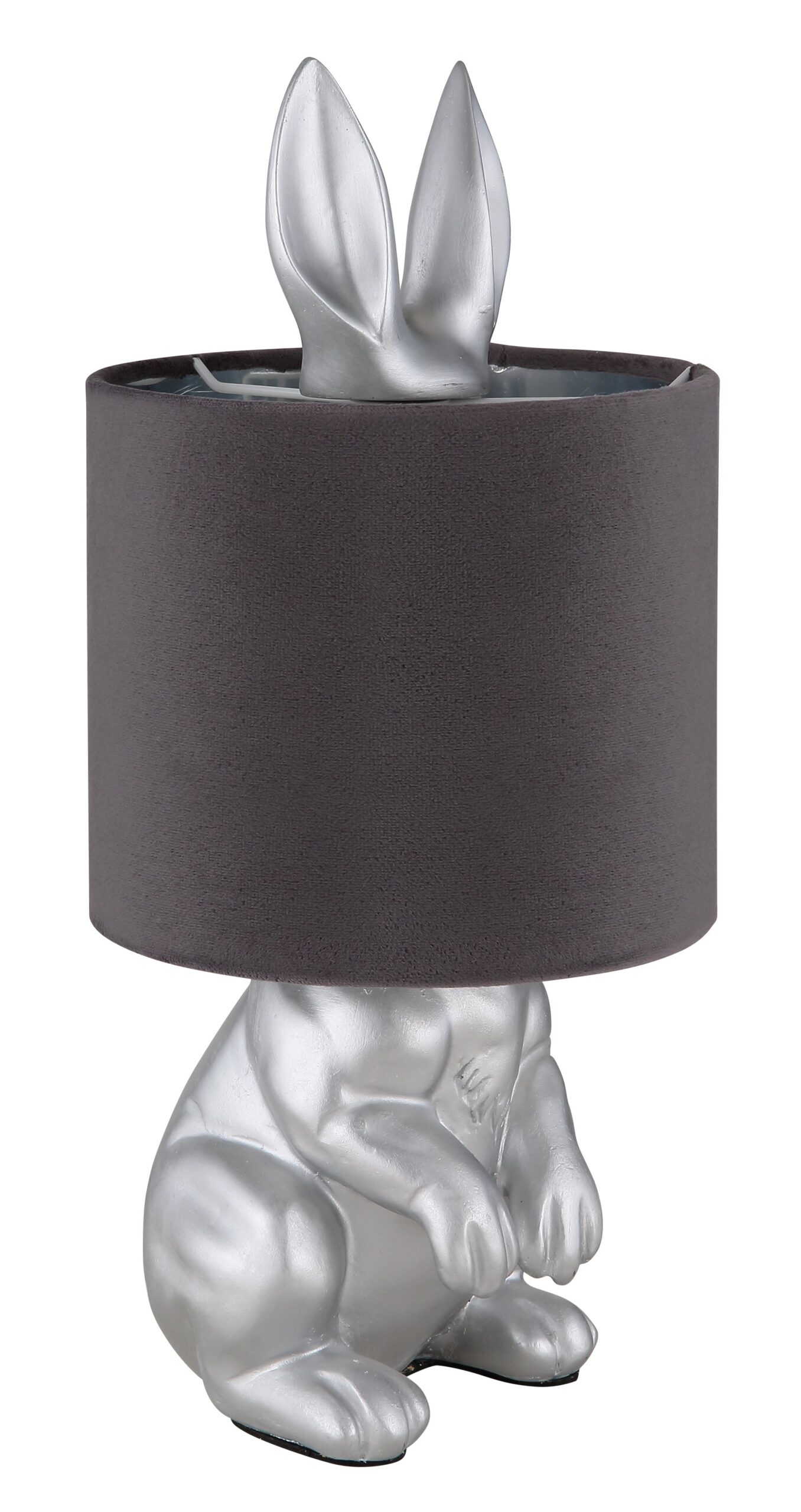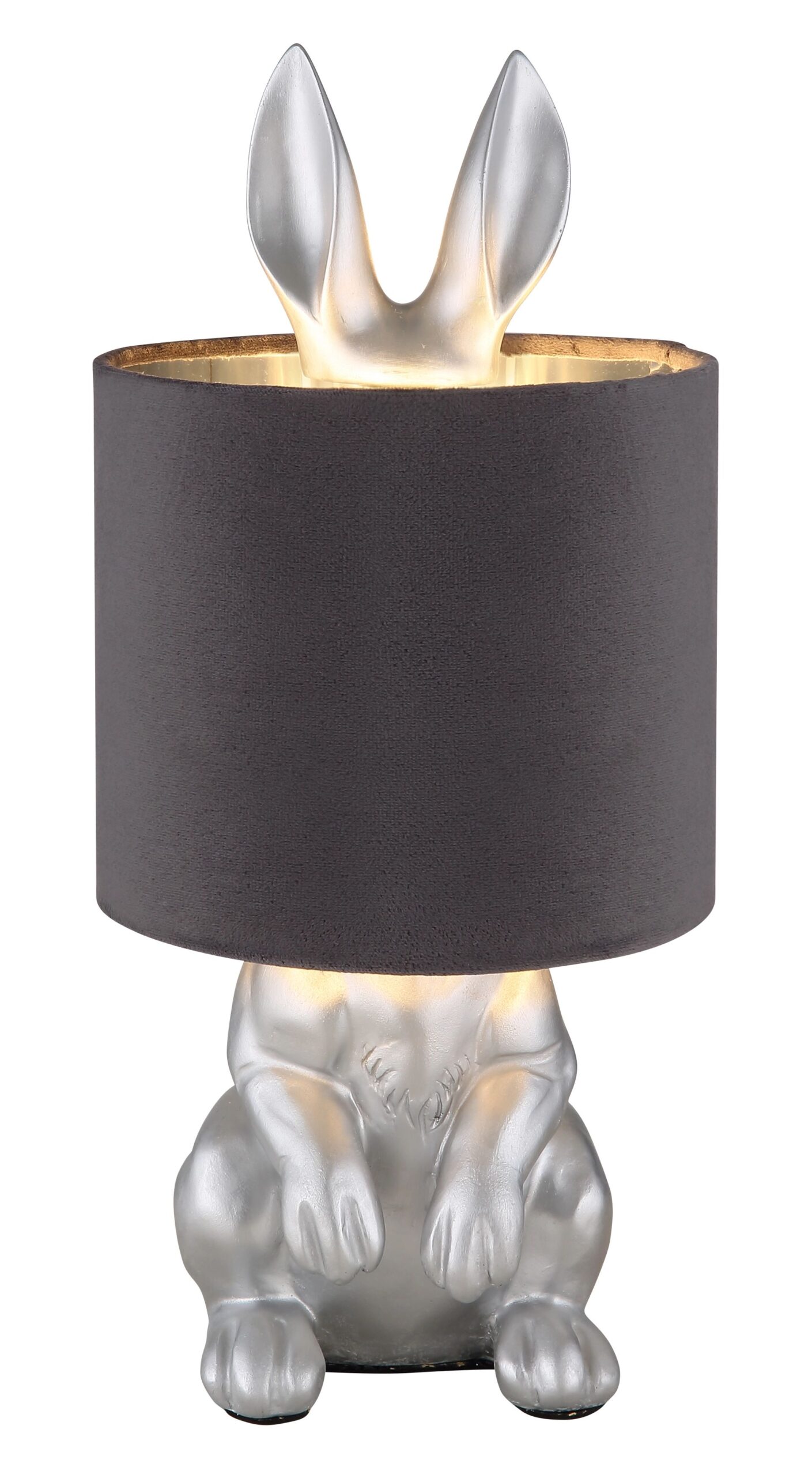 De RABBIT tafellamp is een elegant en stijlvol accentstuk dat iedere ruimte verrijkt. Met een konijnenbasis in een zilverkleurige afwerking en een luxe lampenkap van grijze velours, creëert deze lamp een unieke en sfeervolle ambiance. Deze lamp is ideaal voor moderne en creatieve woonomgevingen, waar design en functionaliteit perfect samengaan.