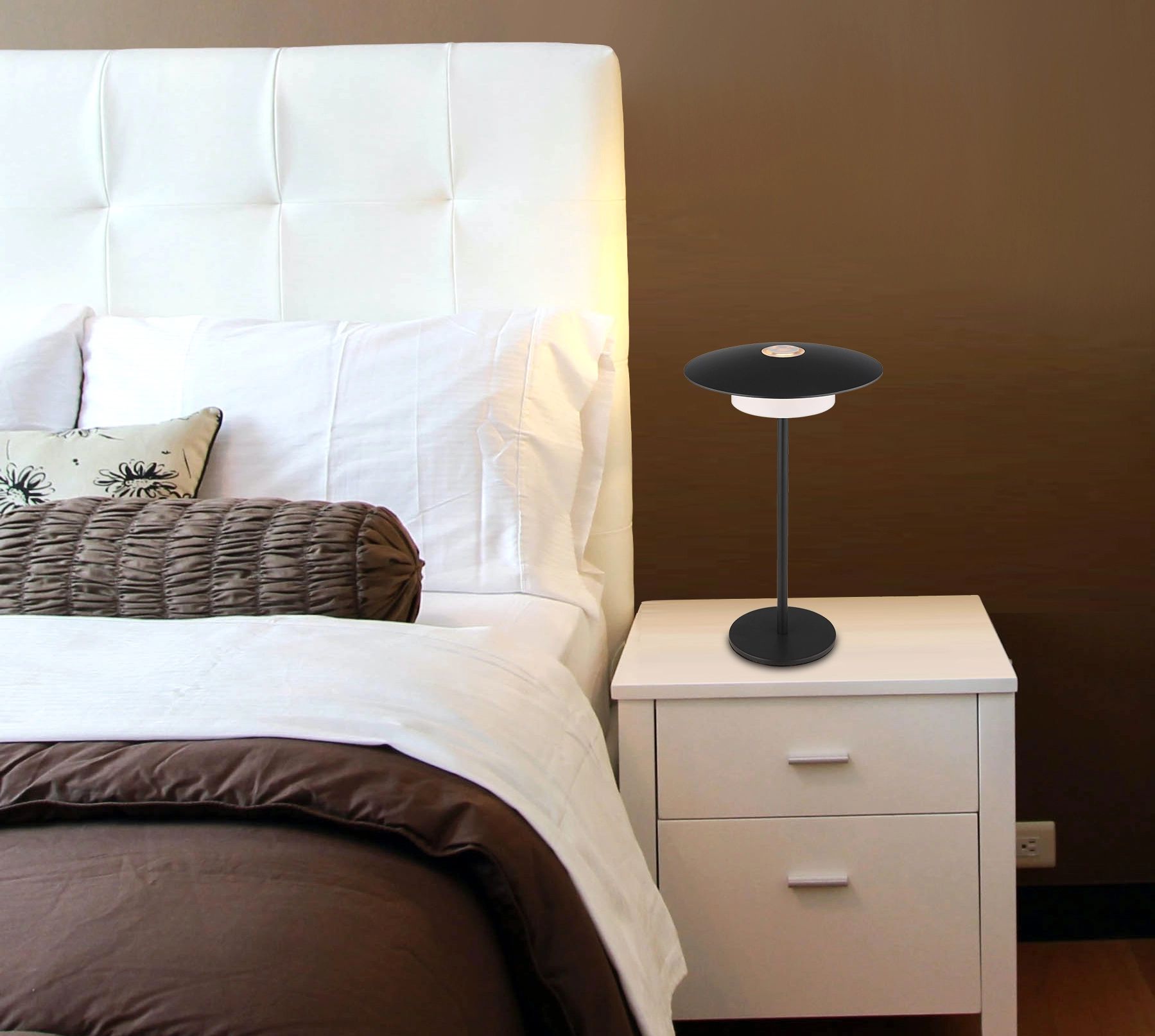 Ontdek de KYLER tafellamp, een elegante en veelzijdige verlichtingsoplossing voor elk interieur. Met een platte, ronde kap van 180 mm in diameter is deze lamp perfect voor op een tafeltje. De matte zwarte metalen behuizing geeft de lamp een moderne en tijdloze uitstraling, terwijl de kap, vervaardigd uit zwart, mat aluminium en plastic, een luxe accent toevoegt. De KYLER tafellamp is uitgerust met een traploze touch dimmer met geheugenfunctie, waardoor je eenvoudig je favoriete lichtinstellingen kunt opslaan. Met een lichtopbrengst van 140 lumen en een aanpasbare lichttemperatuur van 1800 K tot 3000 K, biedt deze lamp veelzijdige verlichtingsopties voor elke gelegenheid.