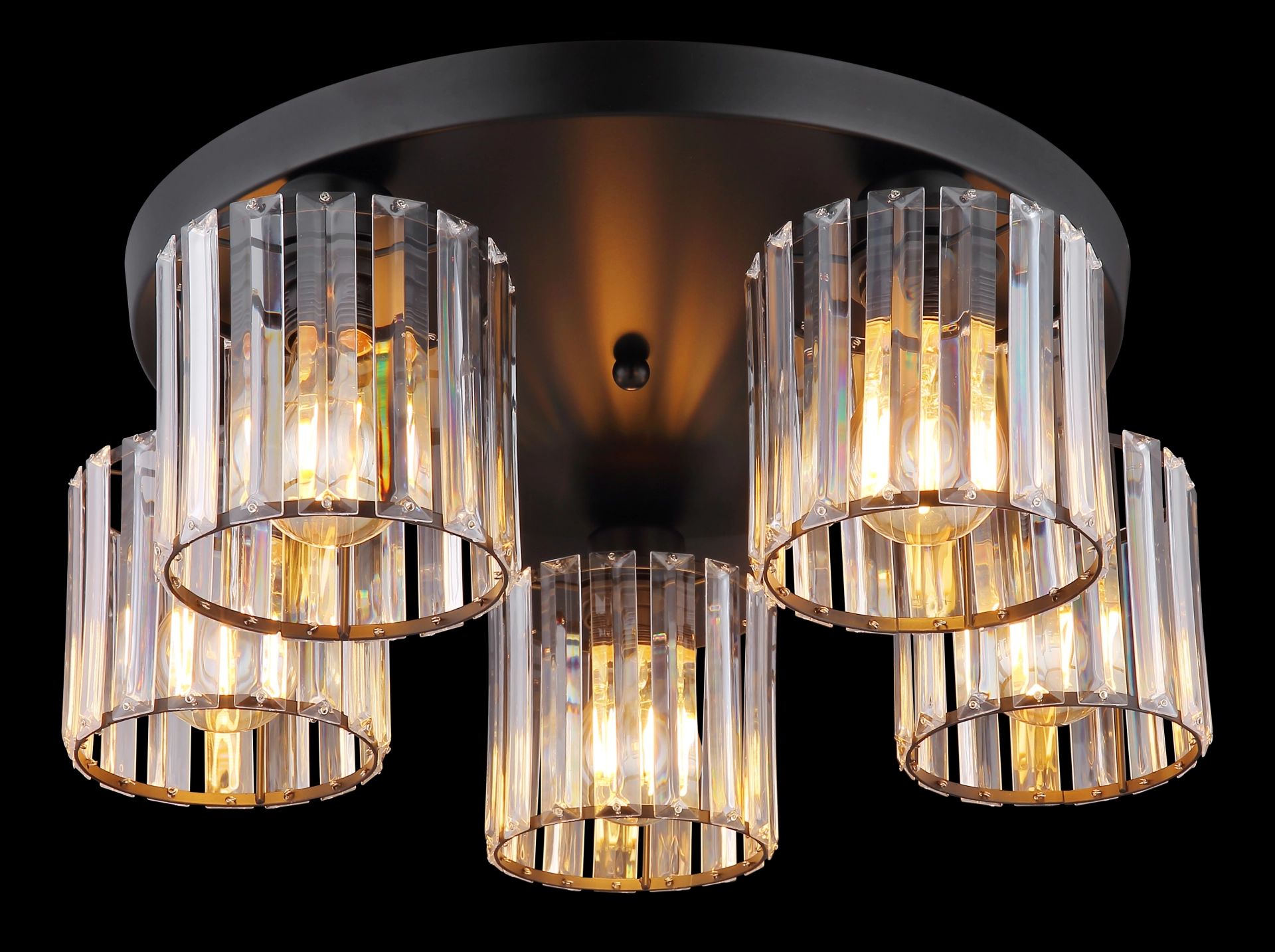 Maak kennis met de JORDANA, een elegante en moderne pendellamp die direct in het oog springt door zijn heldere acrylkristallen en strakke ontwerp. Deze ronde lamp is vervaardigd uit zwart, matgelakt metaal en is voorzien van vijf schaduwkapjes, elk versierd met sprankelende acrylkristallen. De combinatie van het ronde silhouet en de schittering van de kristallen zorgt voor een luxueuze uitstraling die elk interieur verrijkt.