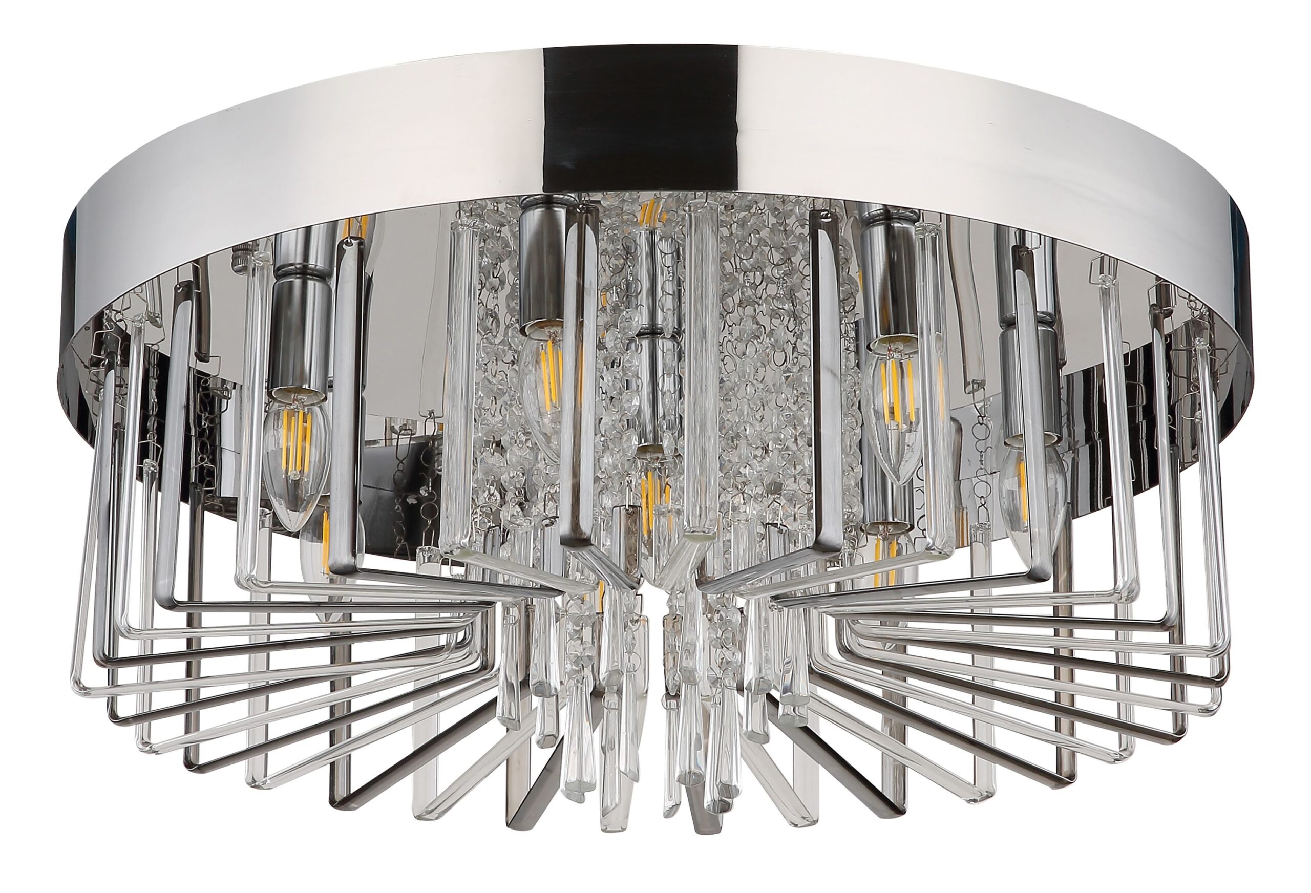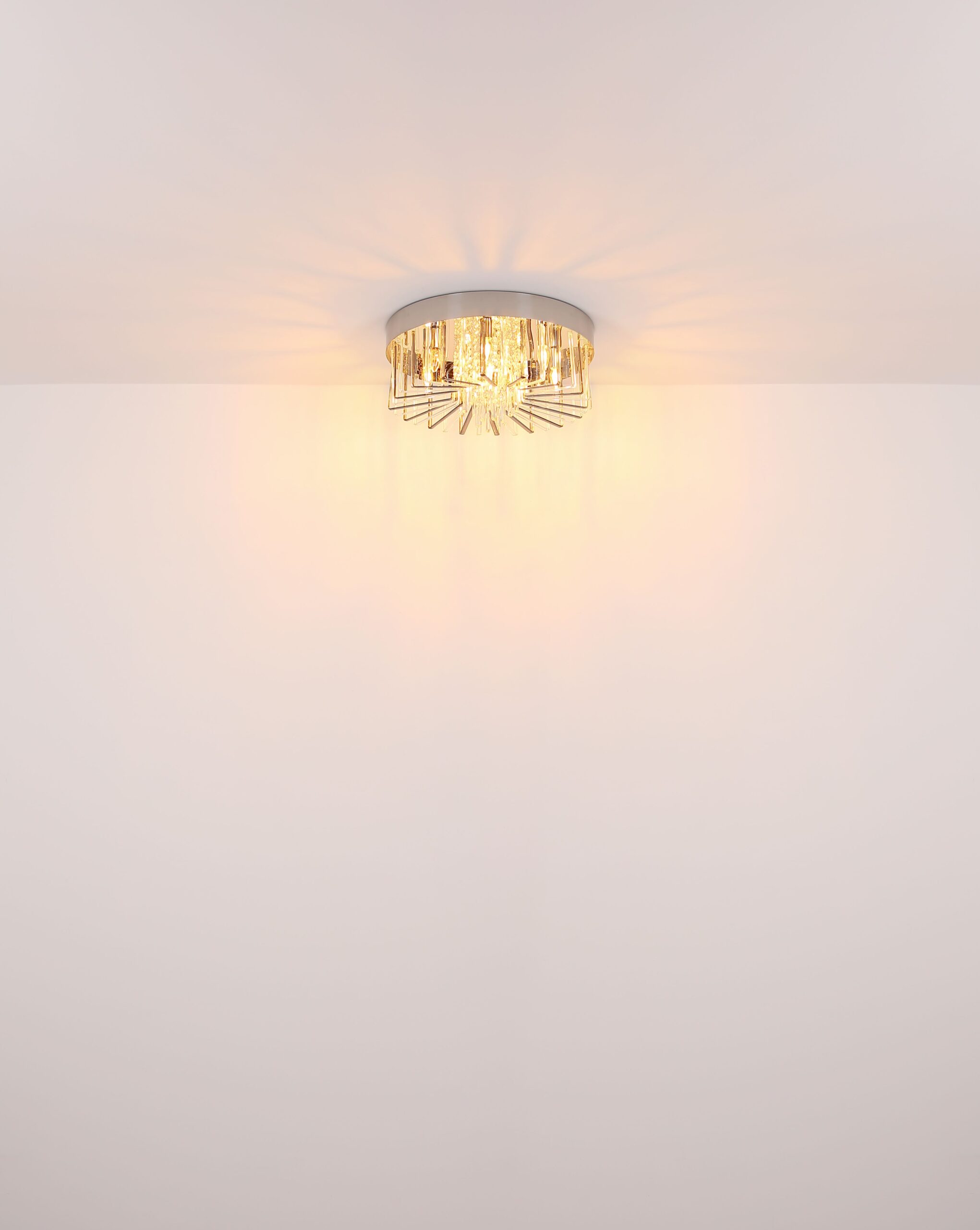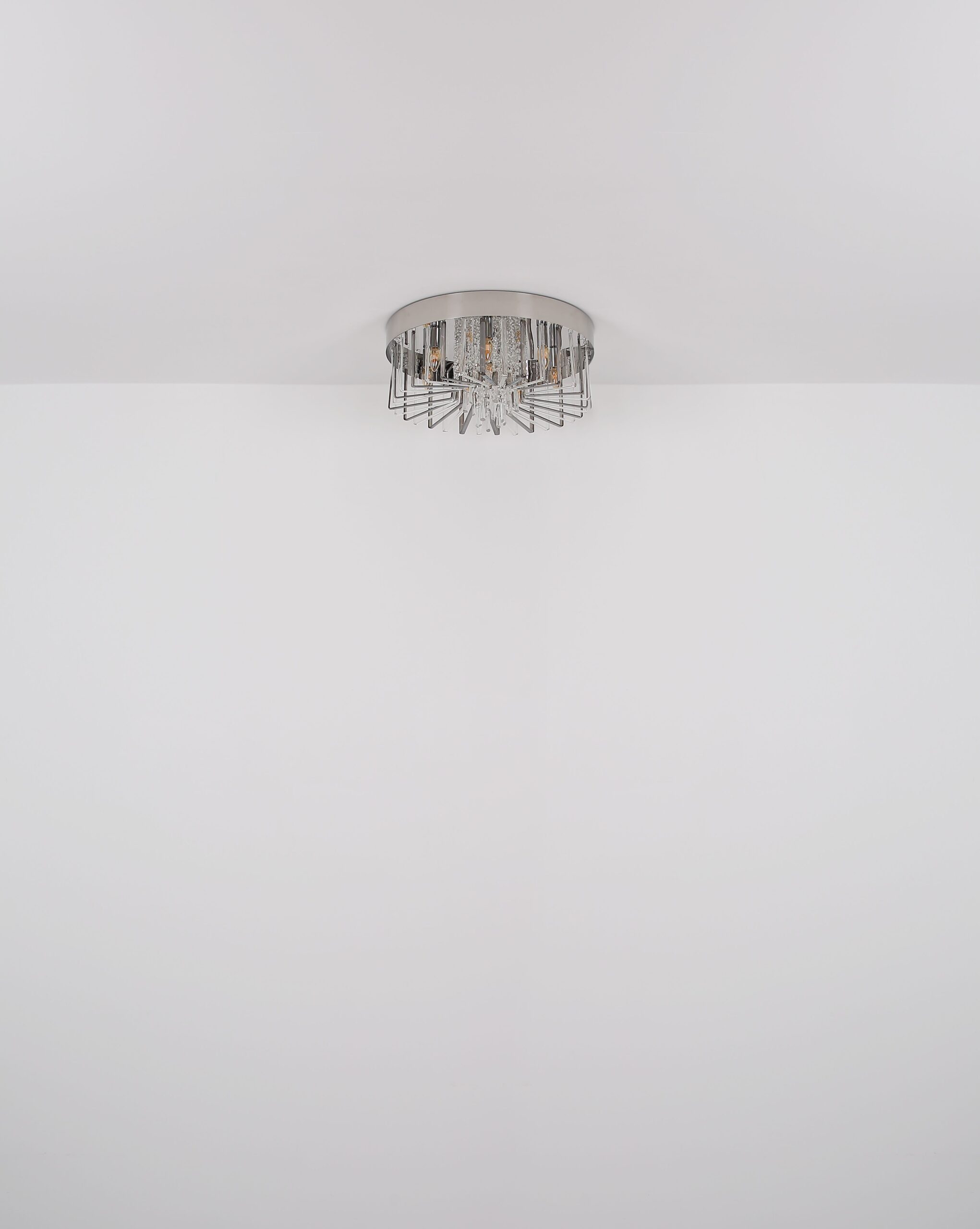 De KIRINA plafondlamp onderscheidt zich door zijn elegante ontwerp en luxe uitstraling. Dit ronde armatuur is gemaakt van verchroomd metaal en is prachtig afgewerkt met een kap van helder K9 kristal, aangevuld met rookkleurige accenten. Met een diameter van 600 mm is deze lamp ideaal voor grotere ruimtes zoals woonkamers of eetkamers. De kristallen hangers zorgen voor een sprankelend lichteffect, wat bijdraagt aan een moderne en verfijnde ambiance.