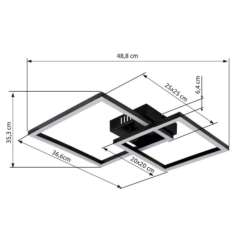 De TYLER plafonnière biedt een elegante mix van innovatief en tijdloos design. Met zijn rechthoekige vorm en twee naast elkaar geplaatste vierkanten creëert deze lamp een opvallende structuur die onmiddellijk de aandacht trekt. Een van de frames is draaibaar, waardoor je de lamp eenvoudig kunt afstemmen op jouw voorkeuren. Het ontwerp is gemaakt van matzwart kunststof en bevat een opalen lampenkap, die zorgt voor een sfeervolle uitstraling in elke ruimte.