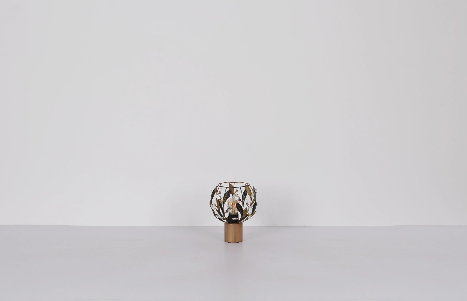 De Mika tafellamp is een prachtige samensmelting van traditionele elegantie en hedendaags design, waardoor het een echte eyecatcher vormt in elke ruimte. Deze lamp beschikt over een aantrekkelijke copa-vorm en een rond scherm, dat is versierd met verfijnde bladeren en fonkelende kristallen. Het frame van bruin hout geeft de lamp een warme en natuurlijke uitstraling, terwijl de goudkleurige, gepatineerde metalen schaduw in combinatie met zwart een decoratief contrast biedt. Deze harmonieuze kleurstelling zorgt voor een gezellige lichtsfeer en voegt een stijlvolle touch toe aan je interieur.