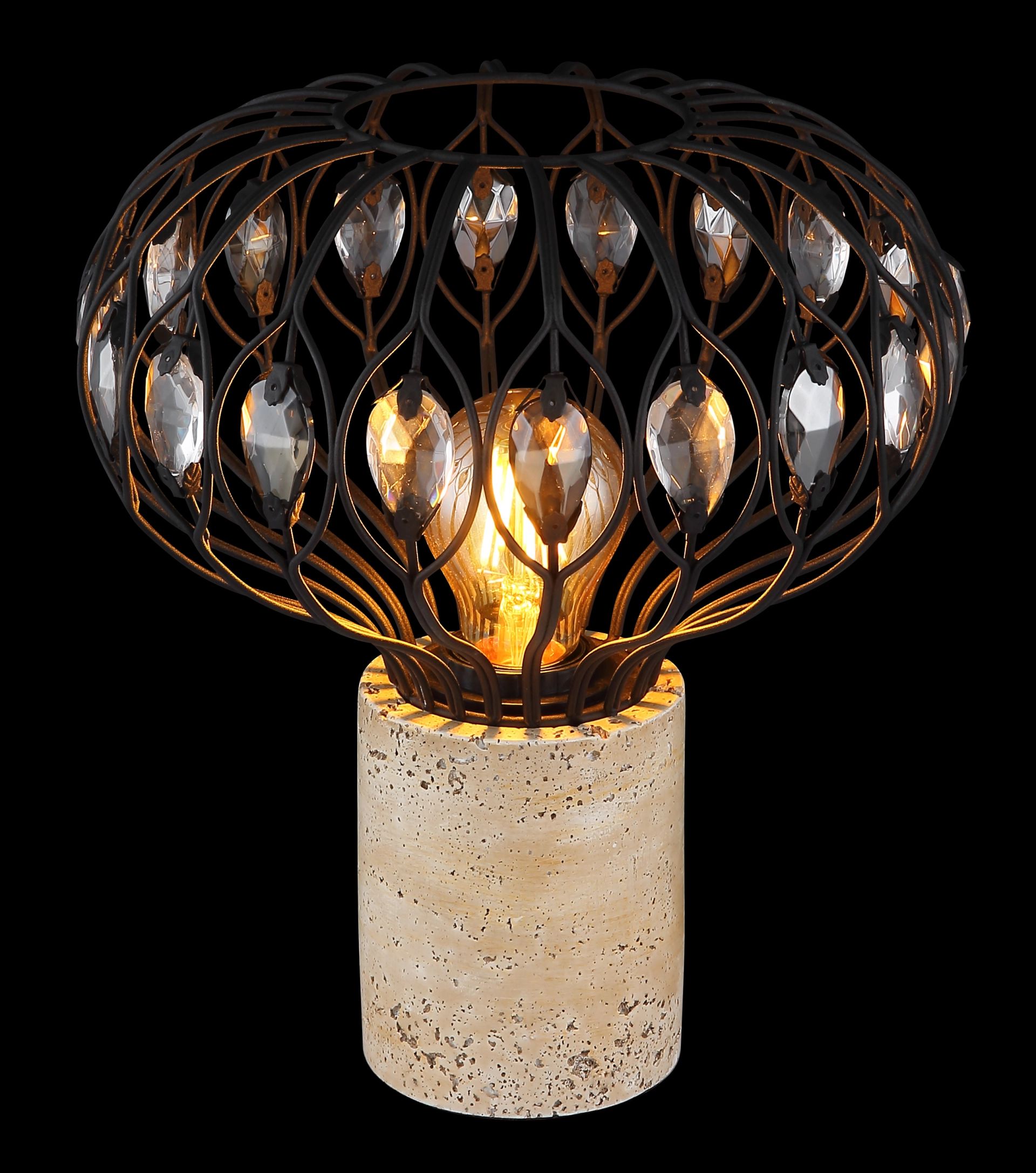 De DORTHY TRAVERTINE STEIN GRAY tafellamp brengt een vleugje elegante vintage charme in ieder interieur. Met een ronde vorm en een kapdiameter van 250 mm is deze lamp veelzijdig inzetbaar op een sidetable, nachtkastje of plank. Het stevige lichaam van echt grijs travertijn zorgt voor een stijlvolle en natuurlijke uitstraling, terwijl de ronde kap van mat zwart metaal is versierd met hoogwaardige K5 kristallen in rook- en heldere kleuren. Dit samenspel creëert sprankelende lichteffecten die een sfeervolle ambiance in huis brengen.