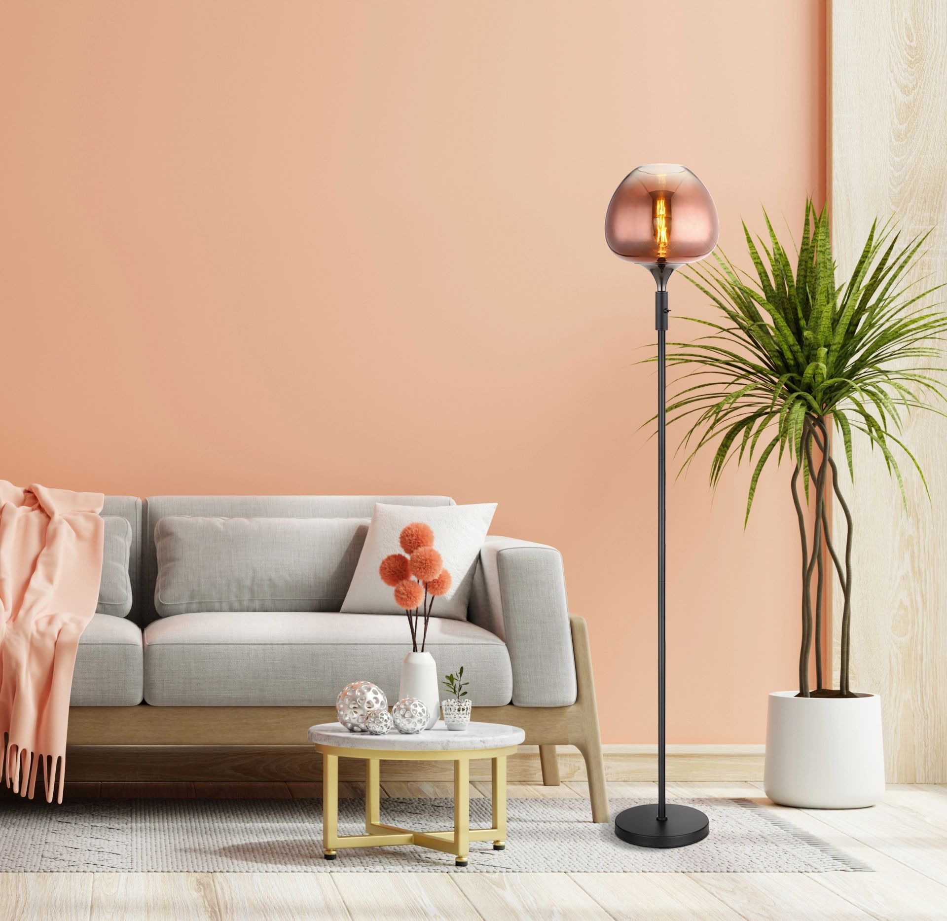 De MAXY vloerlamp voegt een elegante touch toe aan elk interieur. Dankzij het ronde, bolle glazen ontwerp verspreidt deze lamp een zacht en aangenaam licht, waardoor een sfeervolle ambiance ontstaat. Het moderne buisvormige frame is beschikbaar in matte zwart of zwart chroom en geeft de lamp een eigentijdse uitstraling. De kap is gemaakt van helder, gemêleerd glas met een prachtige koperachtige tint, die het licht op een bijzondere manier weerkaatst en aanvullende charme biedt.