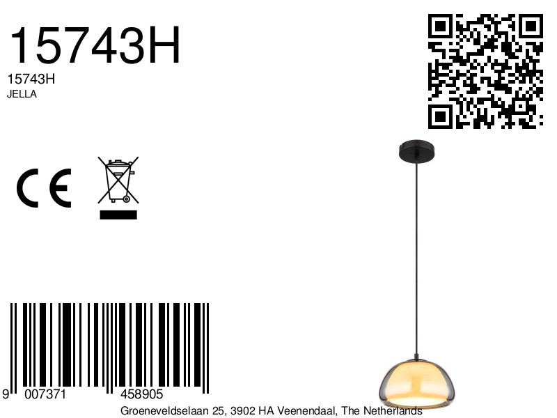 Be the first to review “Elegante zwarte hanglamp met rookopalen glas Jella”