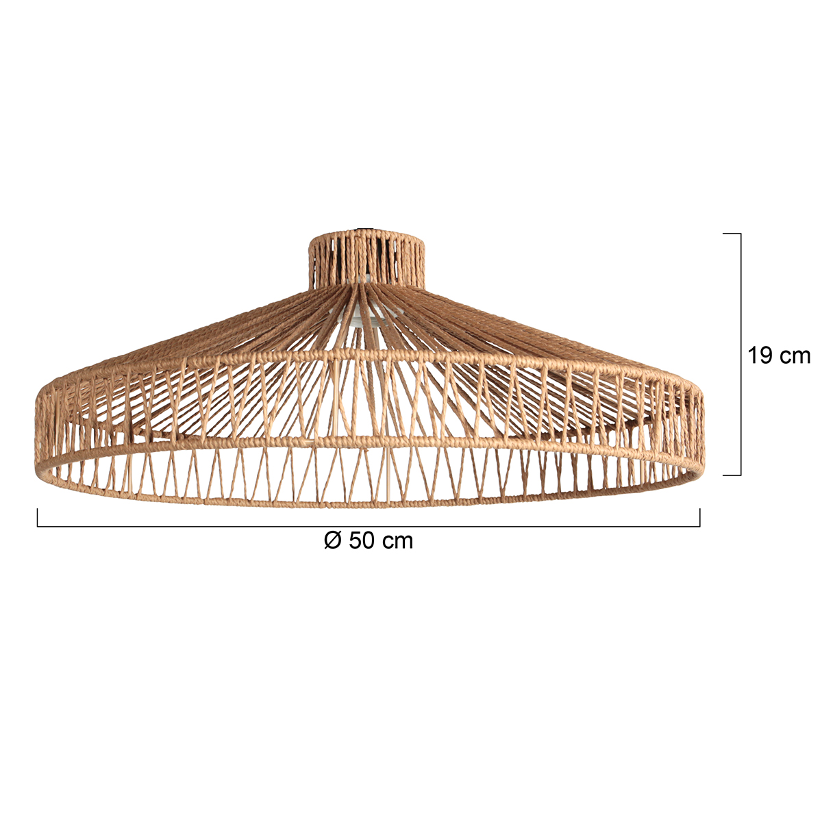 Deze touwlampenkap van 50 cm breed en 19 cm hoog heeft een open, gevlochten structuur die zorgt voor een speels lichtspel op muur en plafond. De natuurlijke touwkleur geeft een bohemian en strandachtige sfeer aan je interieur.