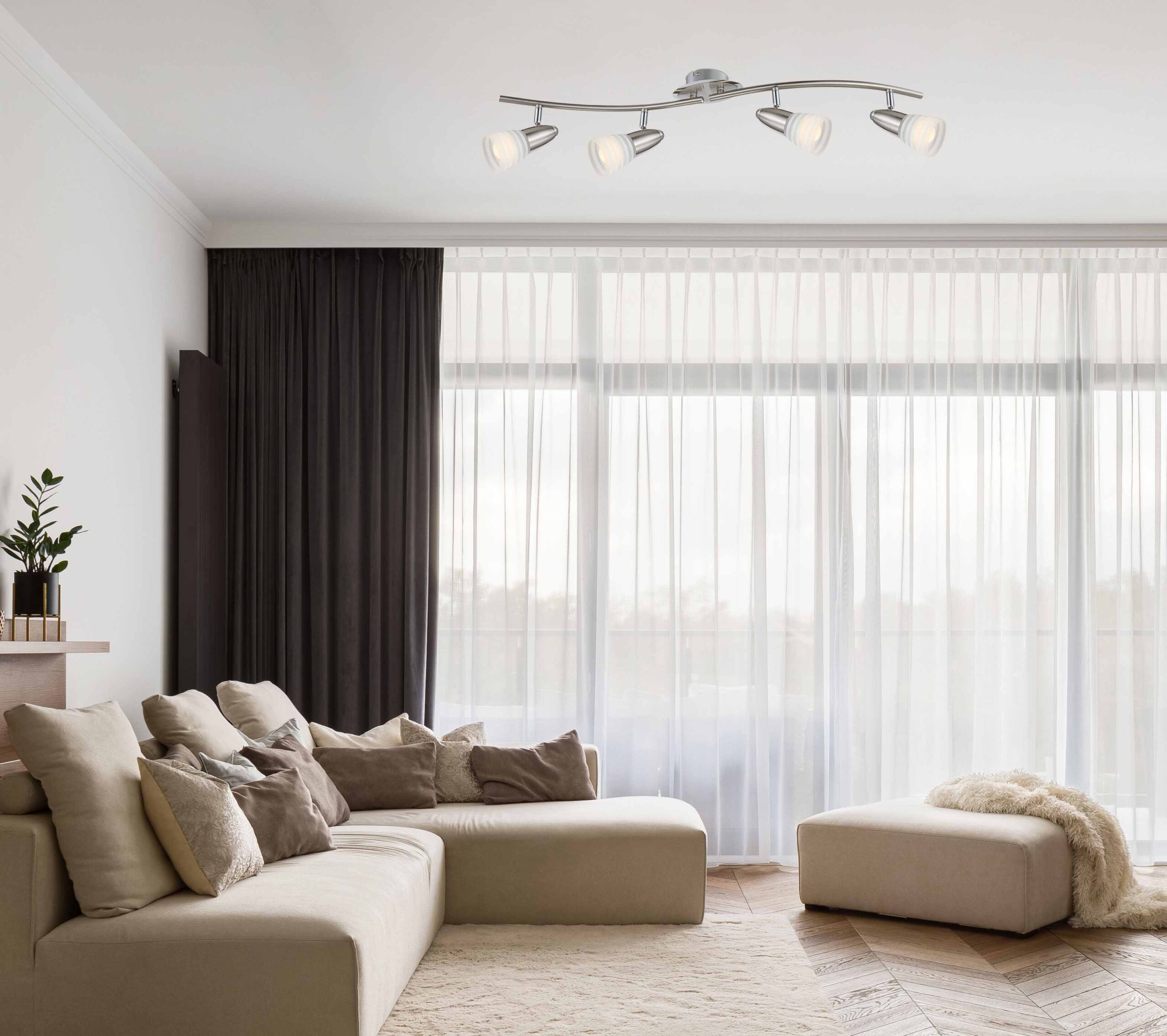 Langwerpige opaalglas spot 4-lichts nikkel Globo Caleb
