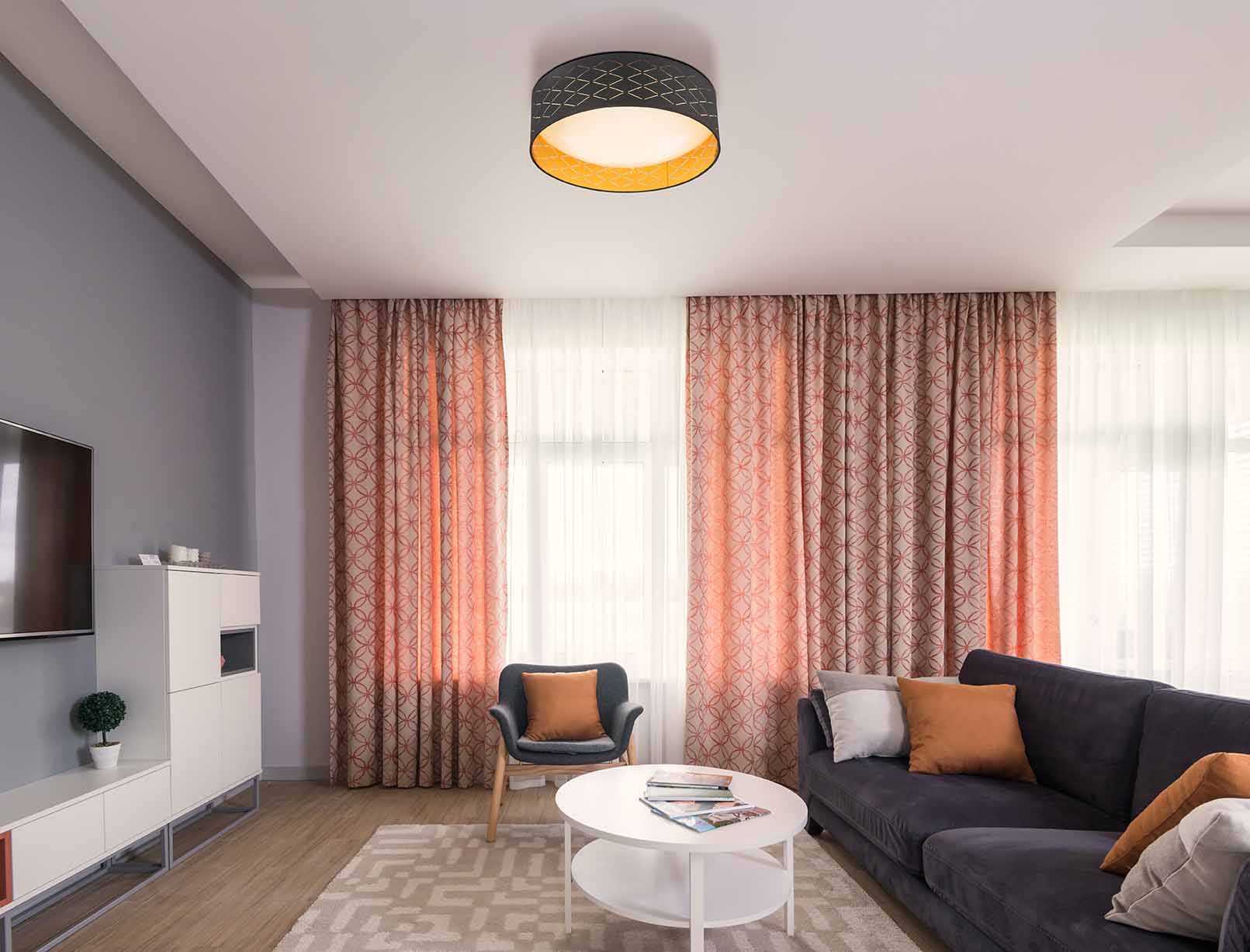 Deze stijlvolle LED plafondlamp heeft een zwarte textiele kap van 40cm breed met decoratieve elementen die het licht mooi reflecteren. De gouden binnenzijde zorgt voor een warme gloed. Uitgerust met een 18 watt LED, geeft het een helder licht van 1000 lumen. Perfect voor moderne ruimtes.
