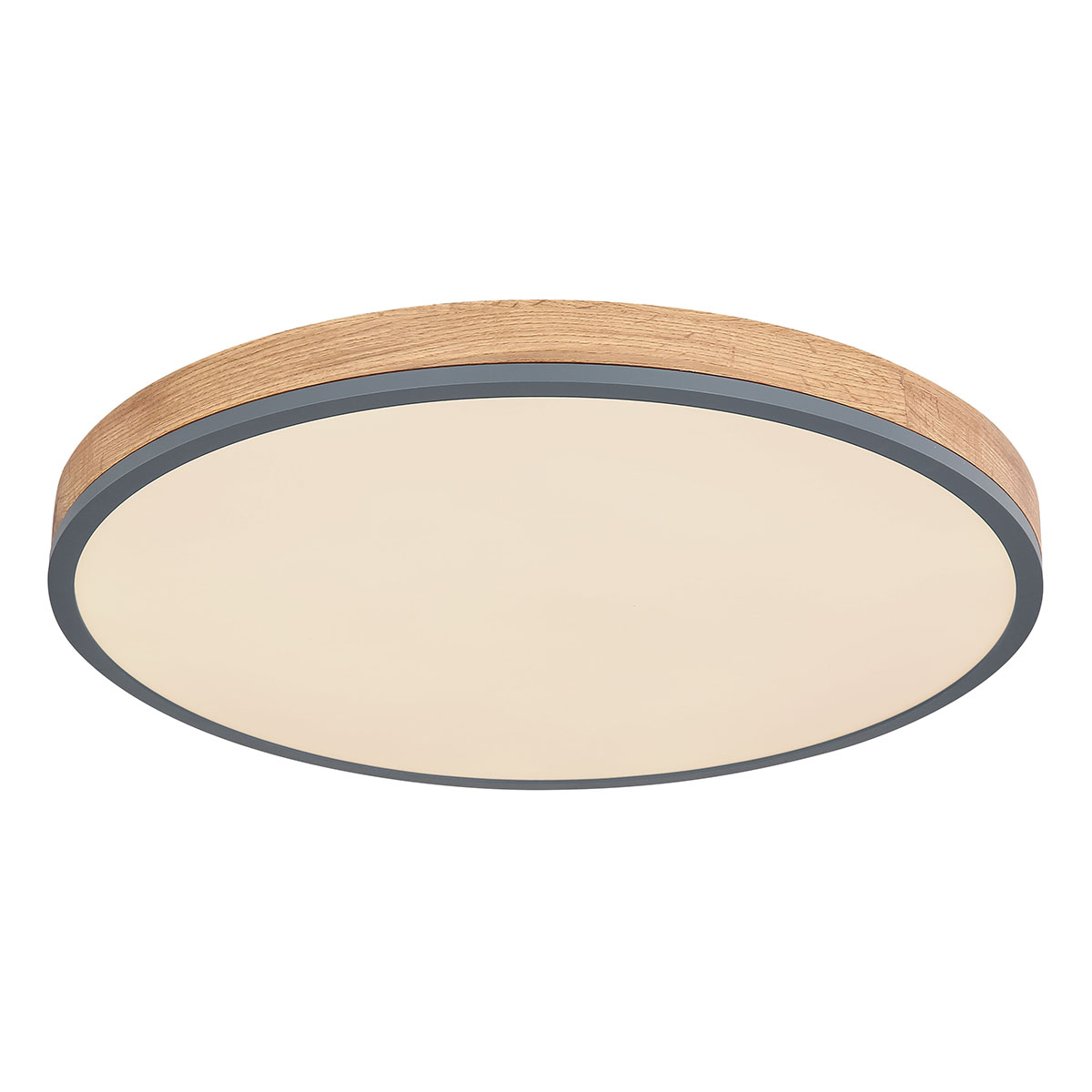 Ontdek de veelzijdige verlichtingsopties van de Doro LED-plafondlamp met een diameter van 60 cm. Omgeven door een stijlvol houten frame, biedt deze lamp de mogelijkheid om de lichttinten aan te passen aan jouw behoeften, variërend van 3000 Kelvin warmwit, 4500 Kelvin neutraal tot 6000 Kelvin koudwit met behulp van de bijgeleverde afstandsbediening. De hoogtepunten van deze lamp zijn onder andere een nachtlampfunctie voor een comfortabele sfeer en een handige timer om deze uit te schakelen. Dankzij de geheugenfunctie onthoudt het de laatst gekozen instellingen, waardoor je elke keer een gepersonaliseerde verlichtingservaring krijgt.