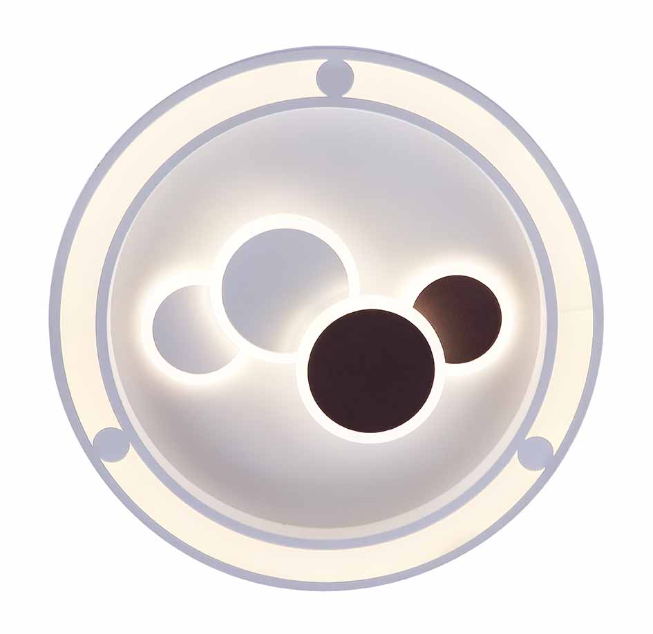 Dit stijlvolle, ronde plafondlamp (Ø48cm) in het wit combineert functionaliteit en design op verfijnde wijze. Gecreëerd met een mix van metaal en opaal acrylaat, wordt het gekenmerkt door zijn flexibele lichtmodi, regelbaar dankzij de bijgeleverde afstandsbediening. Binnen handbereik kunt u schakelen tussen warmwit (3000K), neutraal wit (4500K) of koudwit (6000K) licht, zodat u gemakkelijk de juiste toon voor uw sfeer kunt instellen. Deze uniek ontworpen plafondlamp straalt tot 2300 lumen uit vanuit haar 50Watt LED, en biedt de mogelijkheid tot dimmen, waardoor u de perfecte lichtintensiteit kunt creëren. Voor de modern bewuste consument is dit prachtige, veelzijdige stuk ongetwijfeld een excellente keuze.
