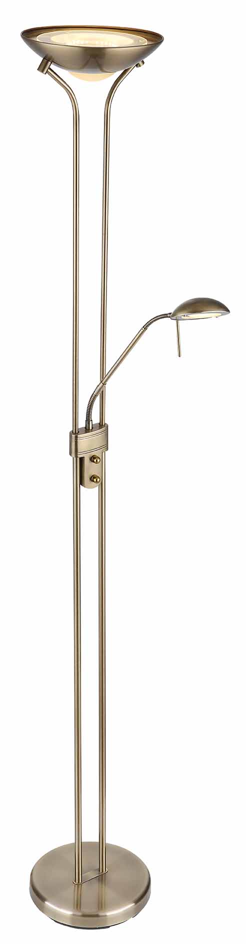 Vloerlamp gesatineerd messing 2-kap Globo Leonas