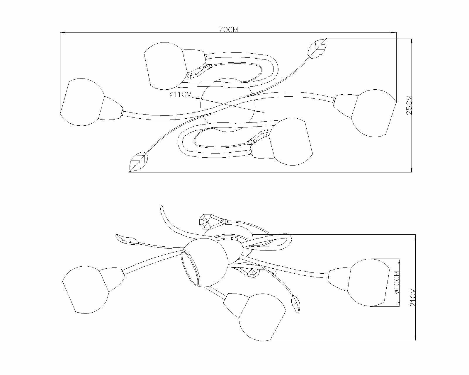 De Lilly plafondlamp laat je interieur stralen met haar unieke design van drie gebogen armen, waarop vier heldere spots geplaatst zijn. Deze lamp, vervaardigd uit chroom en mat nikkel, wordt gekarakteriseerd door de vier opaalglazen en een vleugje glamour dankzij de acrylkristallen decoratie. De lamp biedt de mogelijkheid om elke E14-lamp te gebruiken tot 40 watt, met een voorkeur voor LED-lampen vanwege hun energiezuinigheid en levensduur. Deze stijlvolle lamp past naadloos bij andere items uit de Lilly-reeks, waardoor je de perfecte harmonie in je woonruimte kunt creëren.