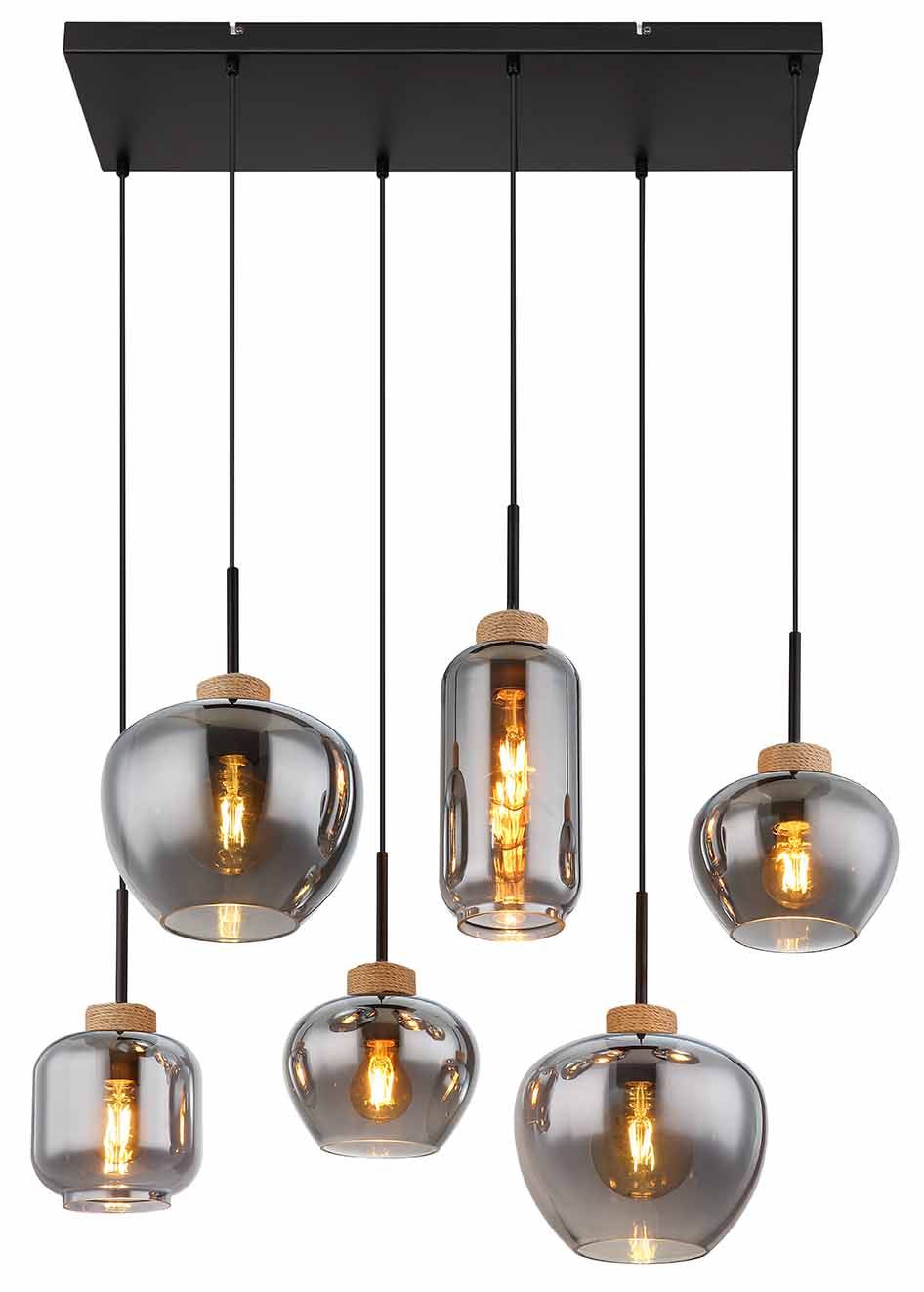 Voeg een moderne, luxueuze touch toe aan uw interieur met de Globo Matt hanglamp. Deze zwarte metalen lamp met zes lichtpunten en een chique smokeglas afwerking is een elegante keuze voor elke woonkamer. Dankzij de E27 fitting en dimbare opties kunt u de lichtsterkte aanpassen voor de perfecte sfeer. Hoewel de lichtbron niet inbegrepen is, biedt de lamp met zijn twee jaar garantie een betrouwbare en stijlvolle verlichtingsoplossing.