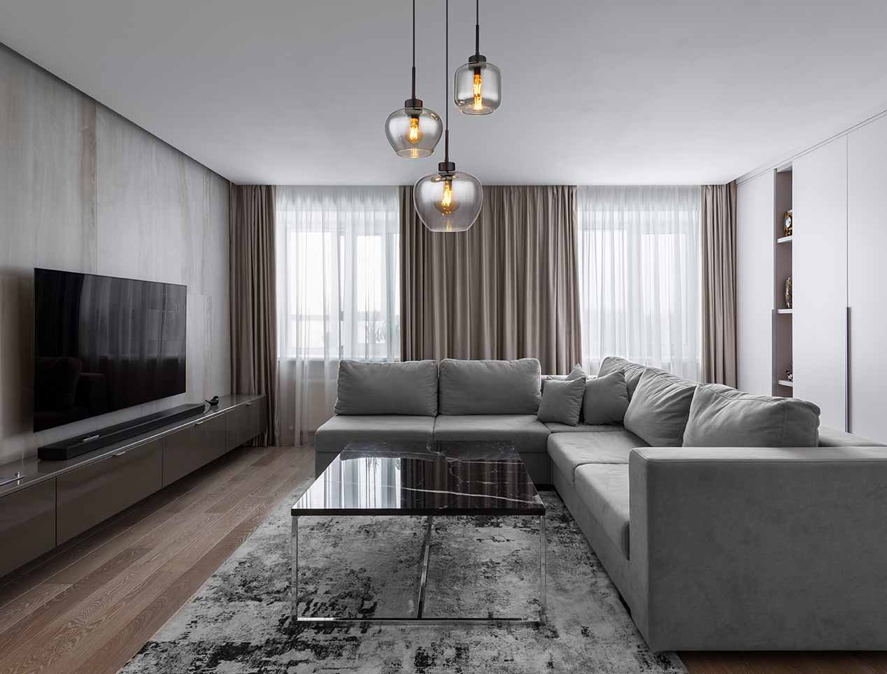 Deze hanglamp (Ø 38 cm) is gemaakt van zwart metaal met rookkleurige glazen. De drie hangende glazen zijn individueel in hun ontwerp en grootte. Deze artistieke lamp, die 120 cm in de kamer steekt, heeft drie E27-aansluitingen (met max. 40 watt), die een vrije keuze van lichtbron mogelijk maken. Vanwege hun lange levensduur en energiebesparing raden we LED-lampen aan. Deze hanglamp is geweldig voor uw woon- en eetkamer.