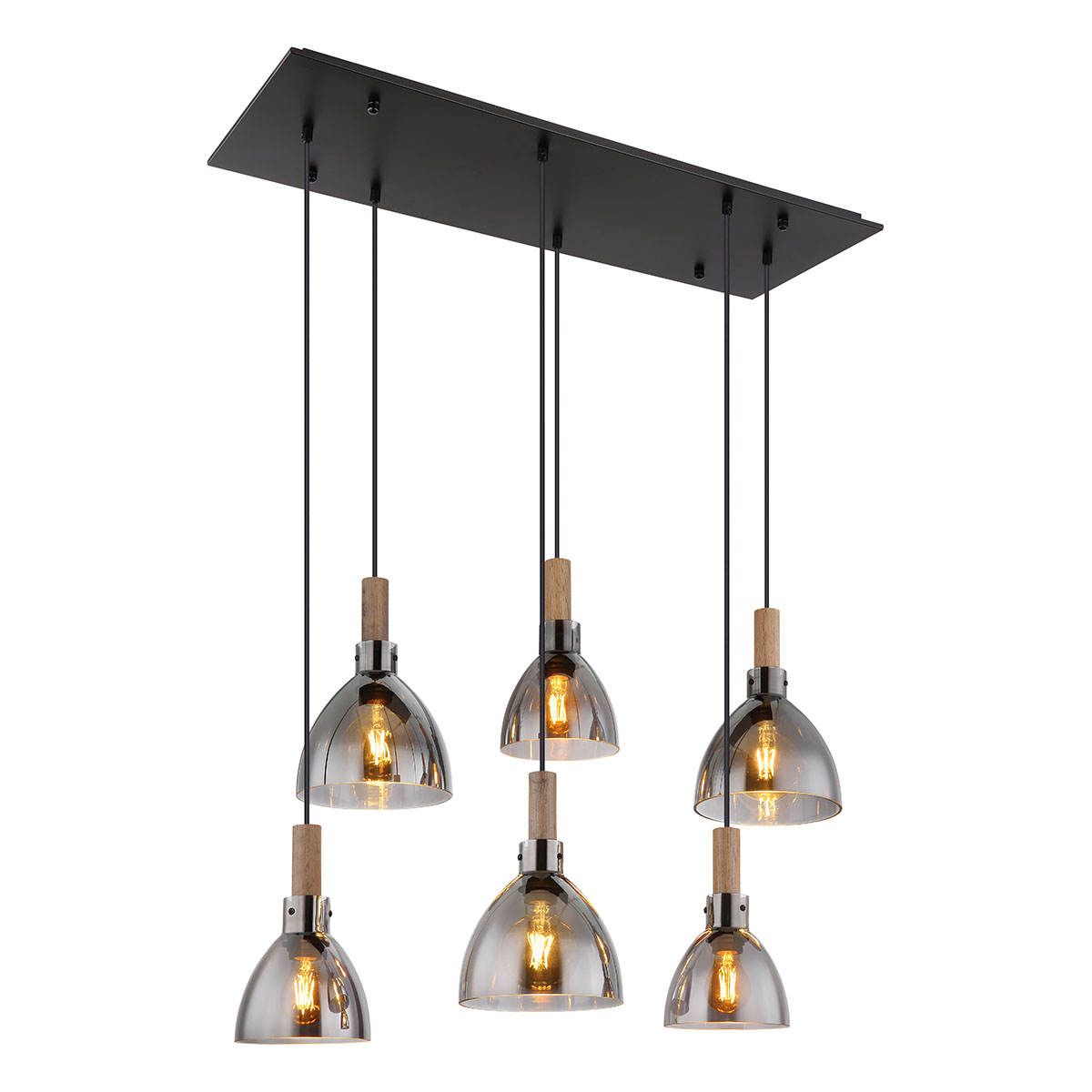 De elegante Globo Mattea hanglamp combineert een strak zwart metalen frame met de luxe uitstraling van glas. Deze lamp met zes lichtpunten is een perfecte keuze voor een moderne woonkamer of slaapkamer. De lamp beschikt over een E27 fitting en kan worden gebruikt met een dimbare lichtbron voor maximale controle over de verlichting. Hoewel de lichtbron niet is inbegrepen, krijgt u twee jaar garantie op deze stijlvolle en duurzame lamp.