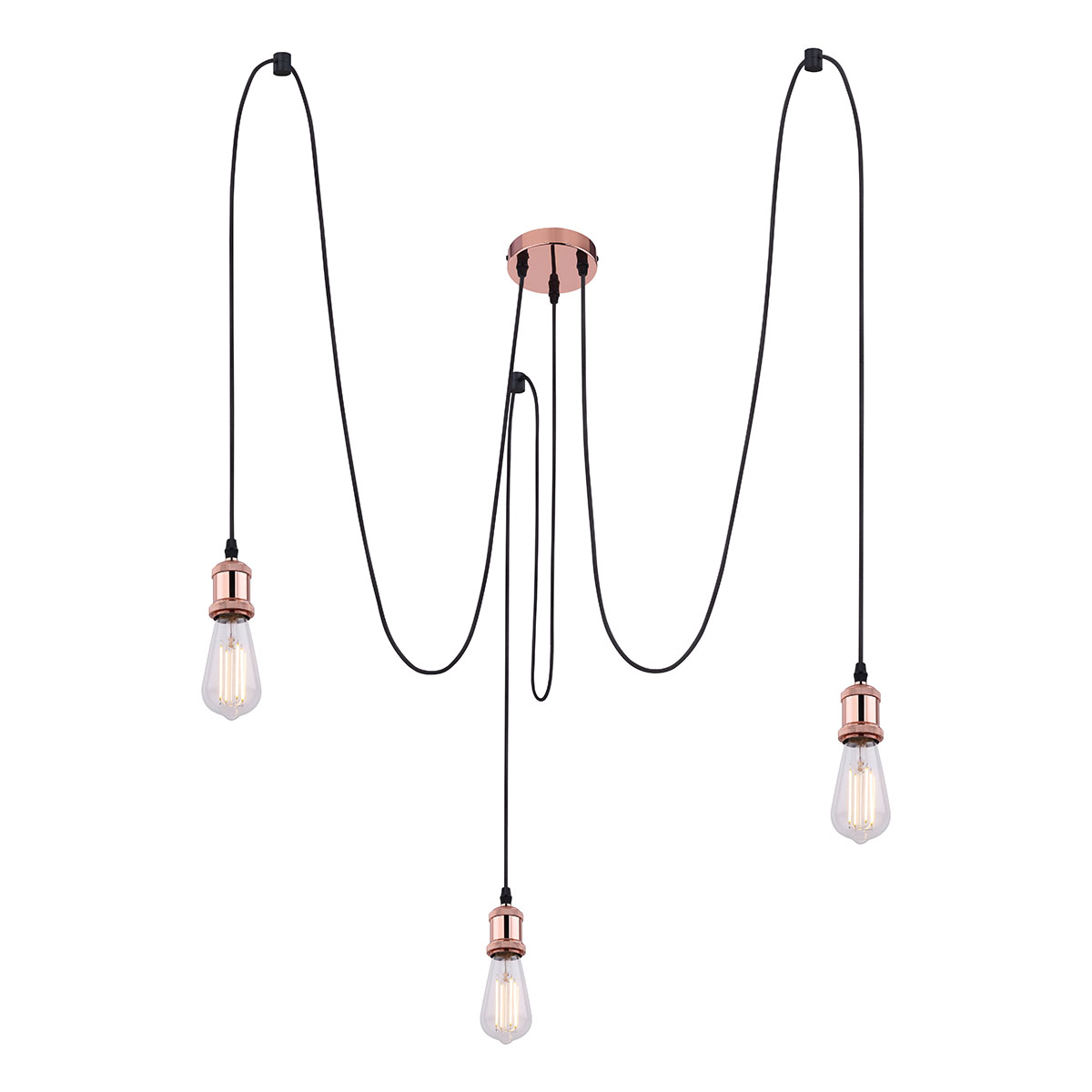 Flexibele koperen hanglamp 3-lichts L Globo Oliver