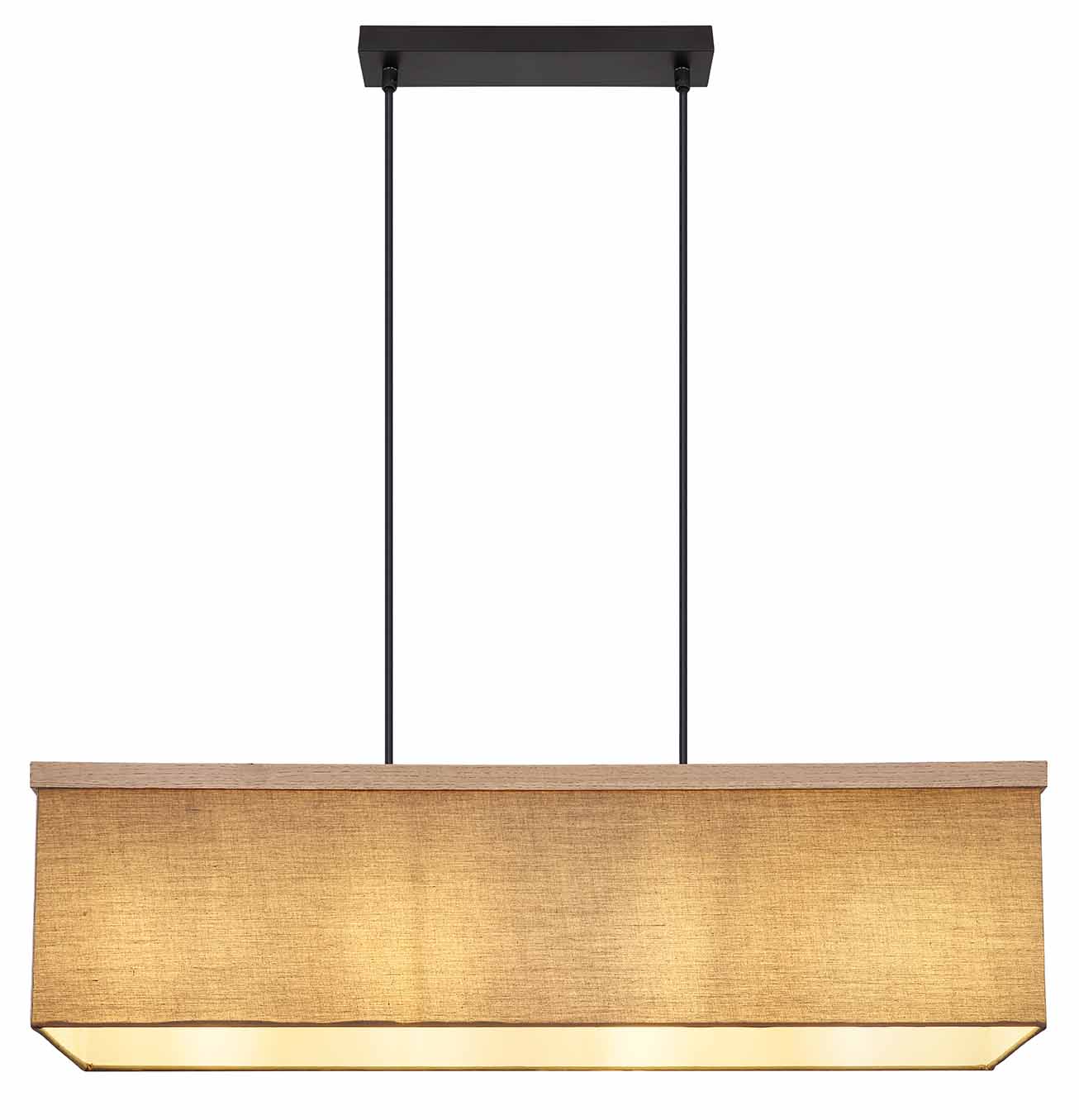 Deze hanglamp uit de OSSI-serie inspireert met twee zwarte matmetalen staven van 1,2 m die uit een smalle zwarte plafondbevestiging komen, elk met een rechthoekige textieltint in antraciet (80x20cm). Uitgerust met twee E27 LED-aansluitingen om de lichtkleur en helderheid aan te passen tot een maximaal vermogen van 9W. LED-lampen worden aanbevolen.