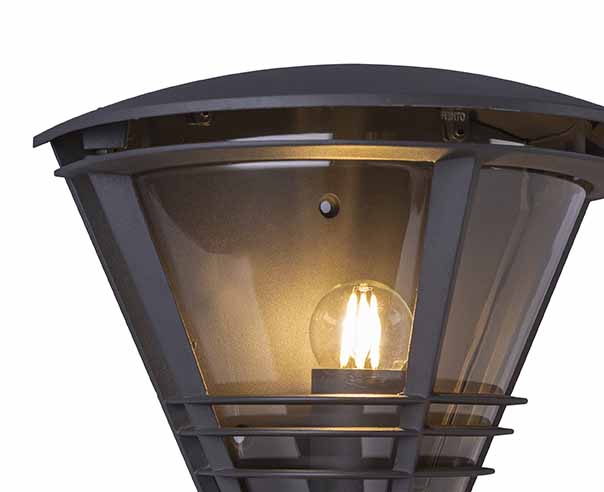 Verrijk uw buitenomgeving met deze veelzijdige wandlamp, vervaardigd uit duurzaam antracietkleurig aluminium en helder kunststof in een tijdloos semi-conisch design. Dankzij de universele E27 fitting, kunt u zelf uw lichtbron tot 60W selecteren, waardoor u volledige controle hebt over de lichtsterkte en kleurtemperatuur. Voor een optimale balans tussen energie-efficiëntie en levensduur wordt het gebruik van LED-lampen sterk aanbevolen. Deze elegante lamp biedt een perfecte mix van stijl en functionaliteit voor elke buitenruimte.