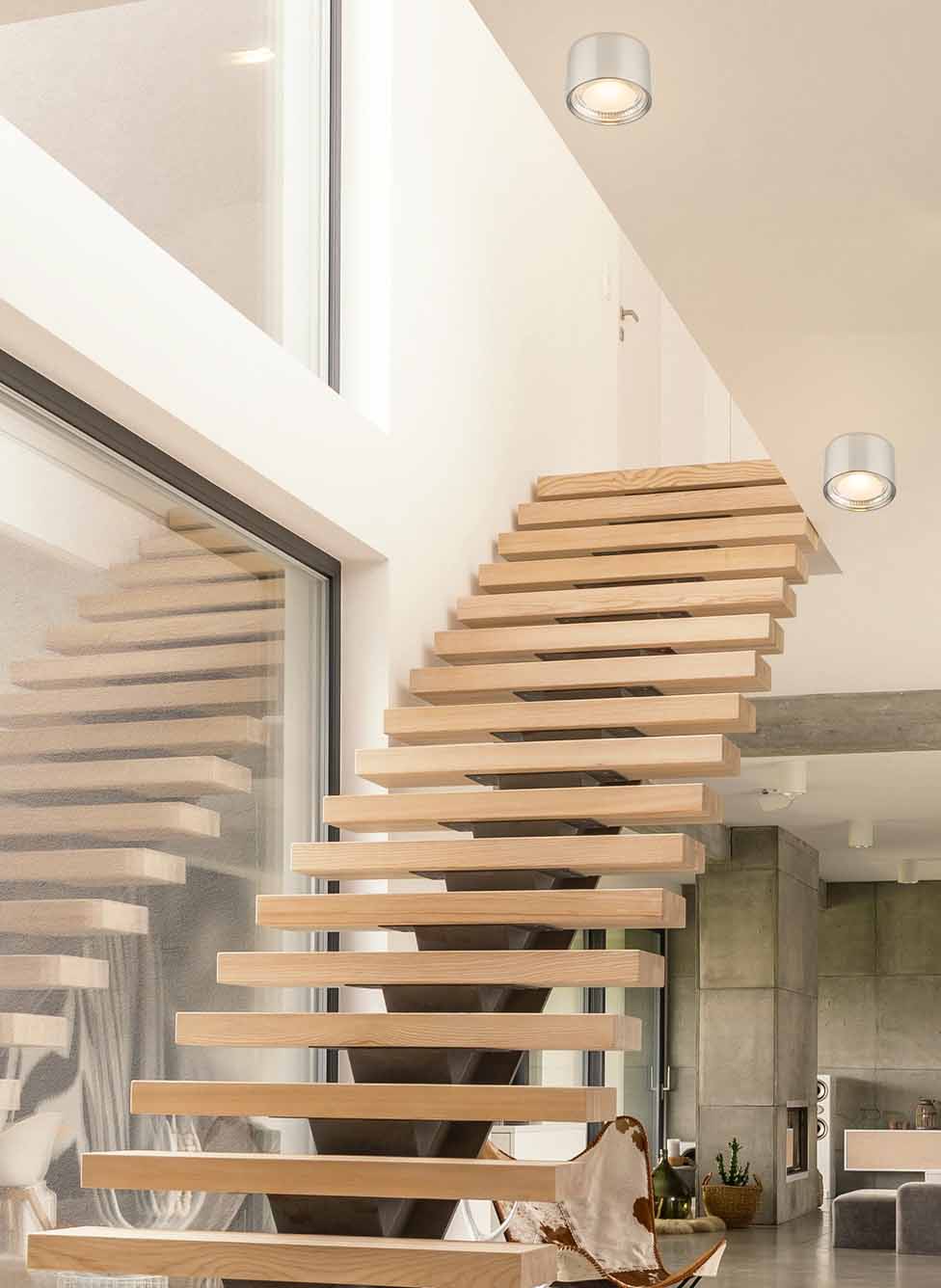 Deze moderne plafondlamp met zijn strakke ontwerp en nikkelkleurige metalen afwerking past perfect in hedendaagse interieurs. Met een diameter van 11,3 cm, ideaal voor installatie op externe plafondelementen, biedt het een harmonieuze verlichting, vooral wanneer meerdere lampen samen worden gebruikt. De cilinder van metaal en gedeeltelijk gesatineerd glas huisvest een 12W LED die 980lm warm wit licht uitstraalt.
