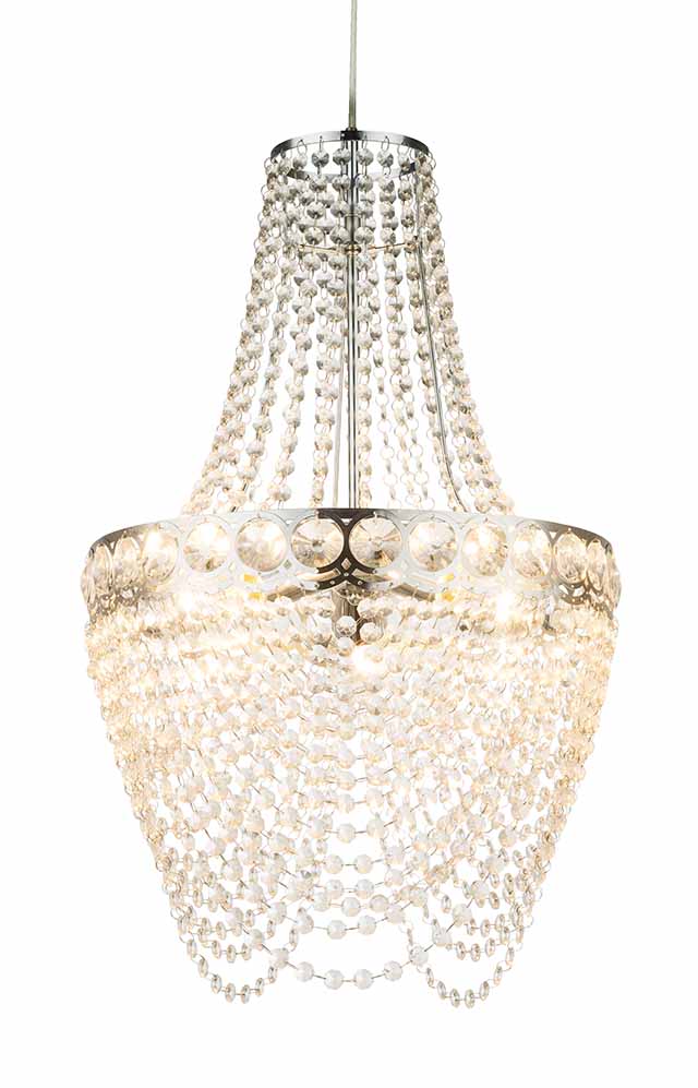 Ontdek de elegante charme die de Stromboli hanglamp naar uw interieur brengt. Gekenmerkt door een strak chroomontwerp, zorgt de uitmuntende afwerking ervoor dat deze lamp iedere ruimte een verbluffende uitstraling geeft. De heldere acrylkristallen en een omvang van 38 cm maken deze kroonluchter tot een echte eye-catcher. De lamp bevat drie E27-fittingen, waardoor er ruimte is voor lampen tot 60 watt voor een optimale verlichting. Energie-efficiënte LED-lampen zijn aanbevolen voor langdurig gebruik en potentiële energiebesparing.