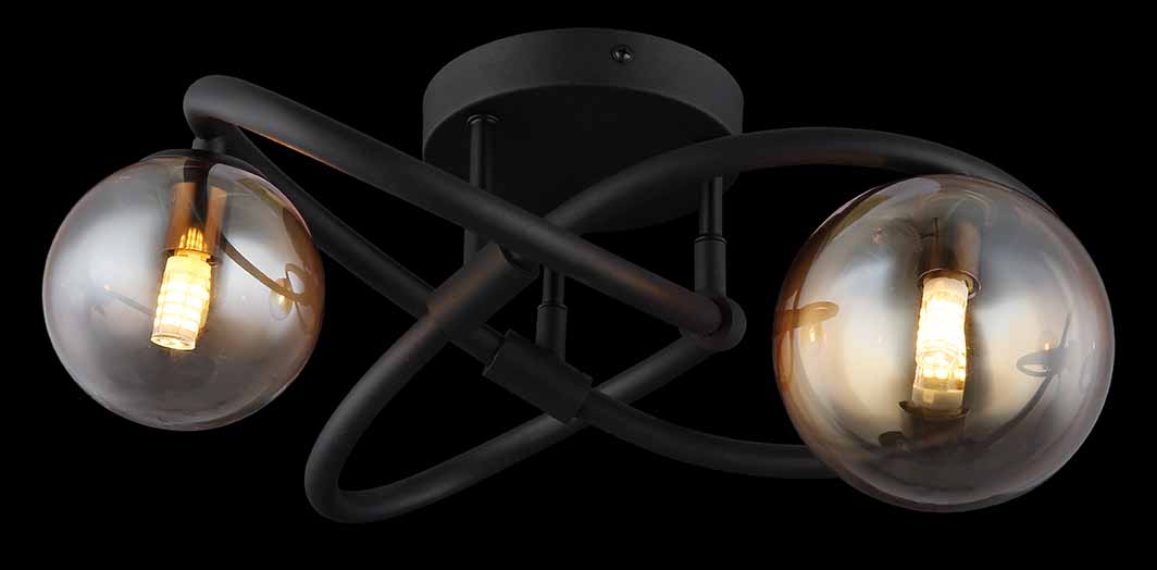 Ronde plafondlamp zwart 2-amberglasbol Globo Tuberius