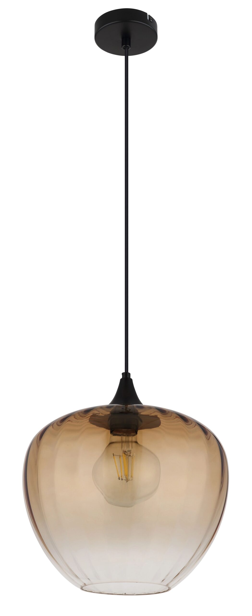 De SANDER hanglamp is de ideale mix van modern design en stijlvolle verlichting. Met een ronde, bolvormige lampenkap van amberkleurig glas, voorzien van elegantie groeven en een prachtig kleurverloop, creëert deze lamp een warme en uitnodigende sfeer in iedere ruimte. Het mat zwarte metalen frame voegt een vleugje verfijning toe, waardoor de lamp een strakke en moderne uitstraling krijgt.