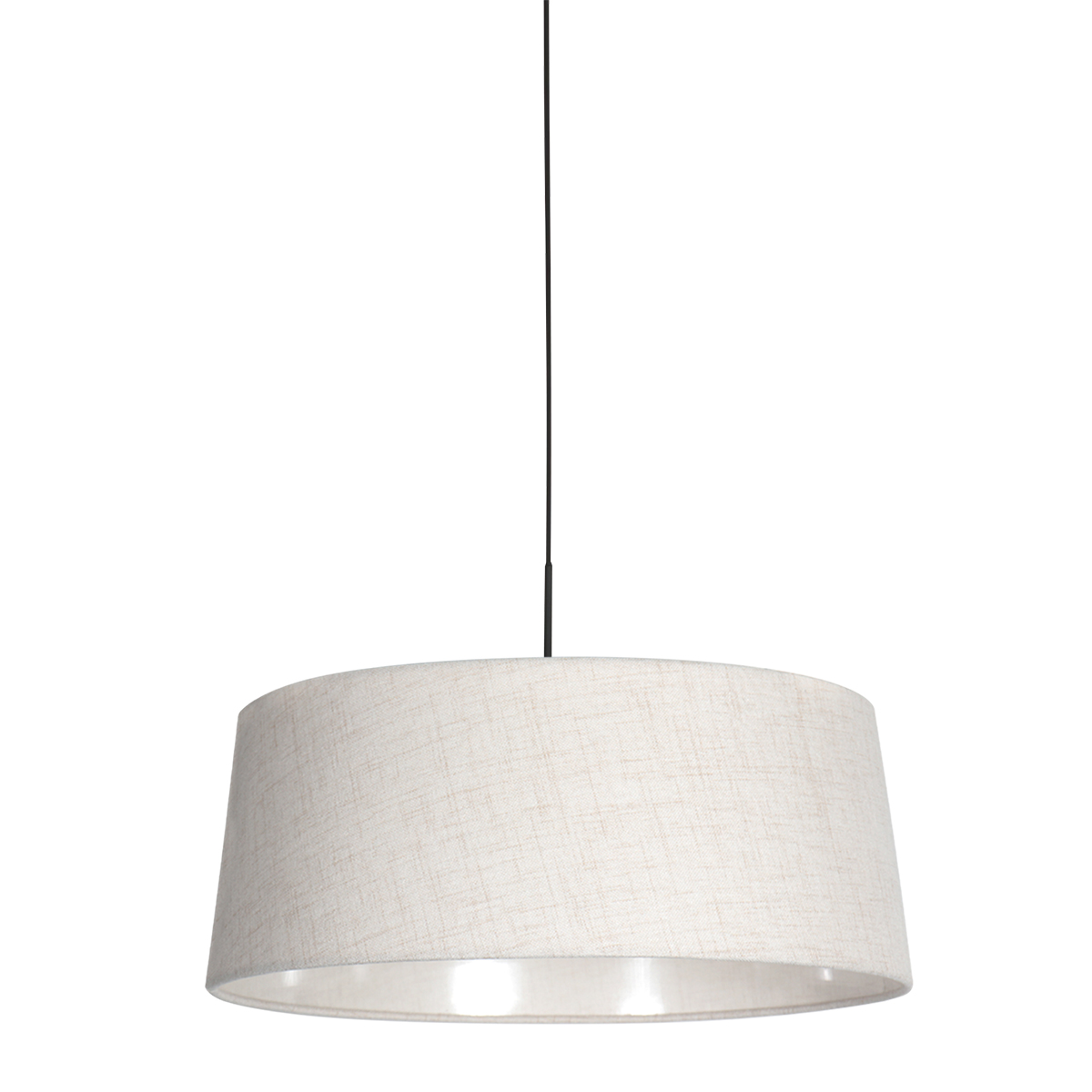 De HaloSwap 4643ZW is een stijlvolle hanglamp die moderne eenvoud combineert met natuurlijke zachtheid. De grote crèmekleurige linnen kap van Ø48 cm heeft een witte binnenzijde die het licht zacht en warm verspreidt, perfect boven een eettafel, kookeiland of zithoek. De zwarte pendel zorgt voor een krachtig contrast en een strakke afwerking.