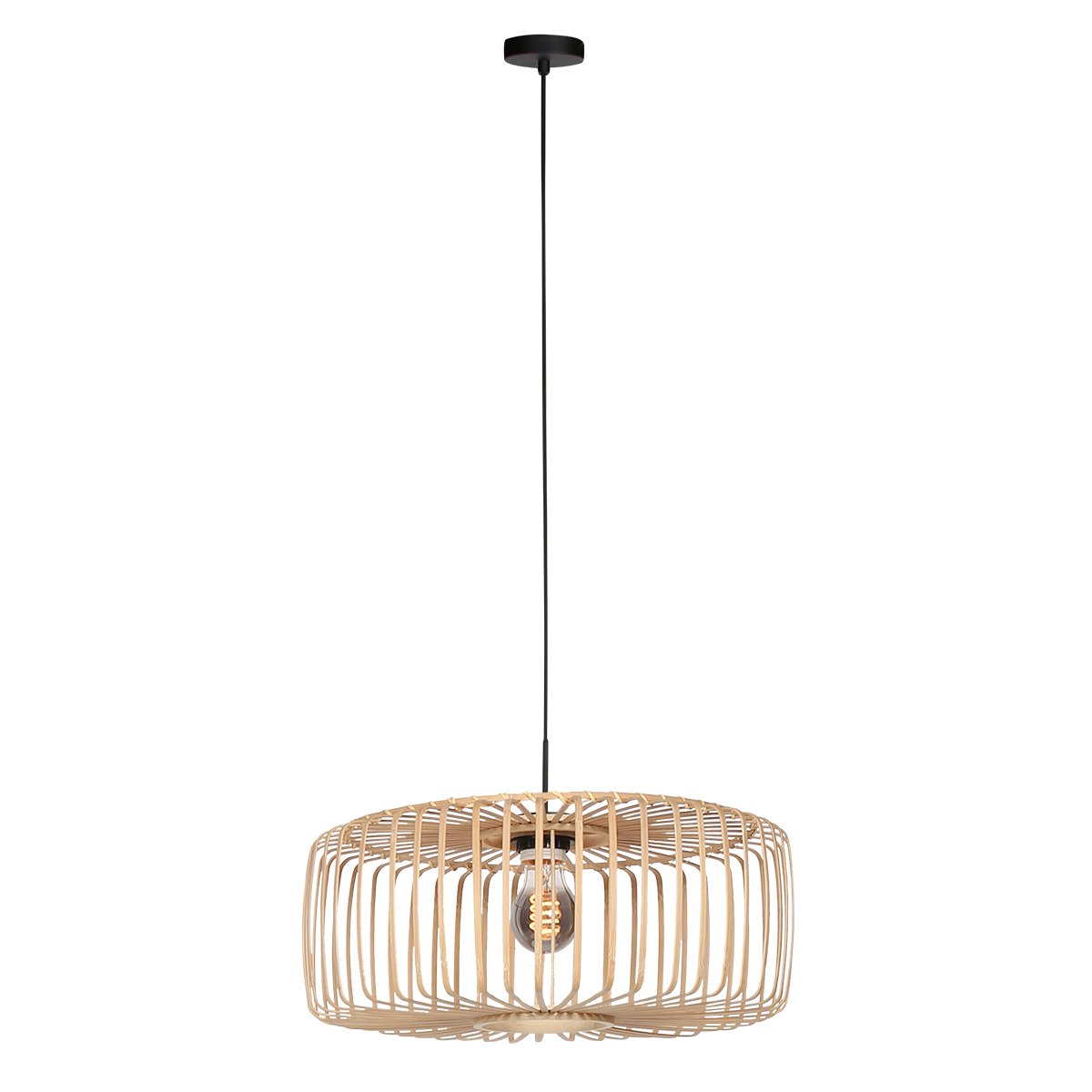 De HaloSwap 4535ZW is een verfijnde hanglamp met een luchtige kap van naturel bamboe, die dankzij het open vlechtwerk een warm en speels lichteffect creëert. De kap van 50 cm diameter zorgt voor een subtiel maar stijlvol accent in de ruimte, terwijl het zwarte armatuur een moderne tegenhanger vormt voor het natuurlijke materiaal. Dit maakt de lamp perfect voor Scandinavische, moderne en Japandi interieurs.
