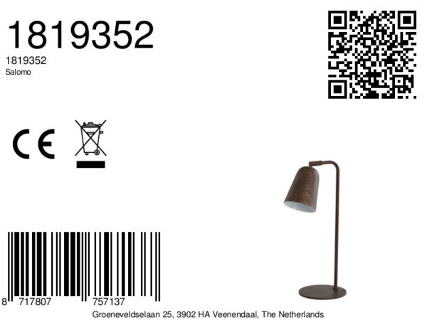 Deze lamp is uitgerust met een E27 (grote fitting) en wordt geleverd zonder lichtbron, waardoor u de vrijheid heeft om een energiezuinige lamp naar keuze te selecteren. Wanneer u een dimbare lichtbron en/of een externe dimmer gebruikt, kunt u de lichtintensiteit naar wens aanpassen. Met een IP20 beveiligingsklasse is deze tafellamp ideaal voor binnenruimtes. U kunt met vertrouwen genieten van de stijl en functionaliteit van deze lamp, ondersteund door 2 jaar garantie op het product.