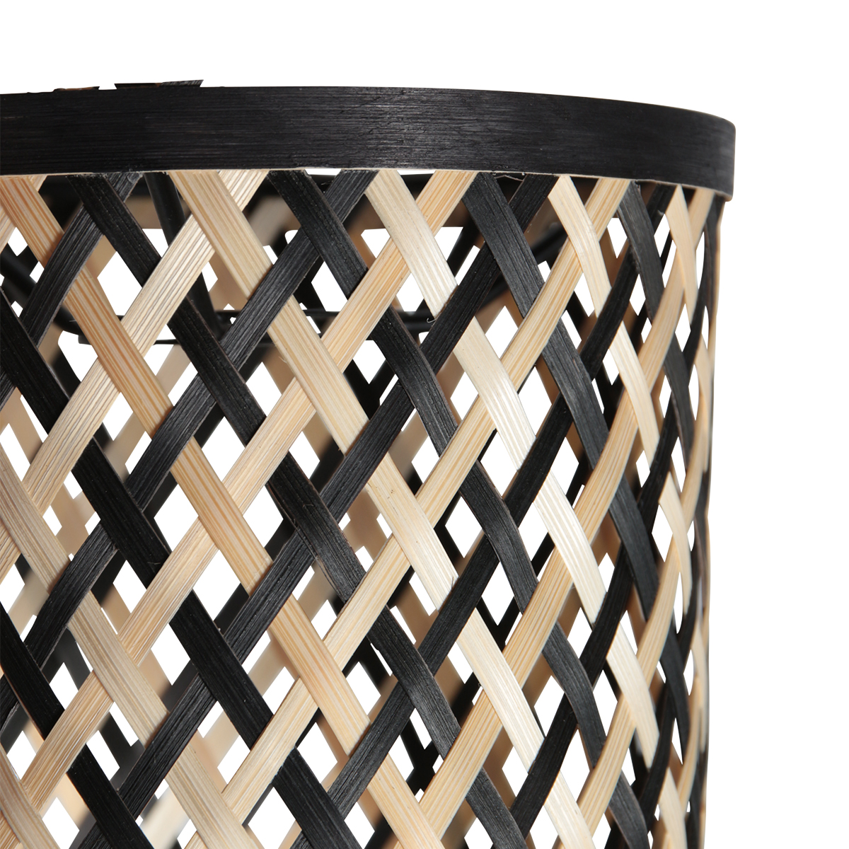Deze compacte bamboe lampenkap van 12 bij 11 centimeter is klein van formaat maar groots in sfeer. De fijne open vlechtstructuur creëert een warm lichtpatroon, terwijl de naturel bamboekleur prachtig combineert met lichte en natuurlijke interieurs.