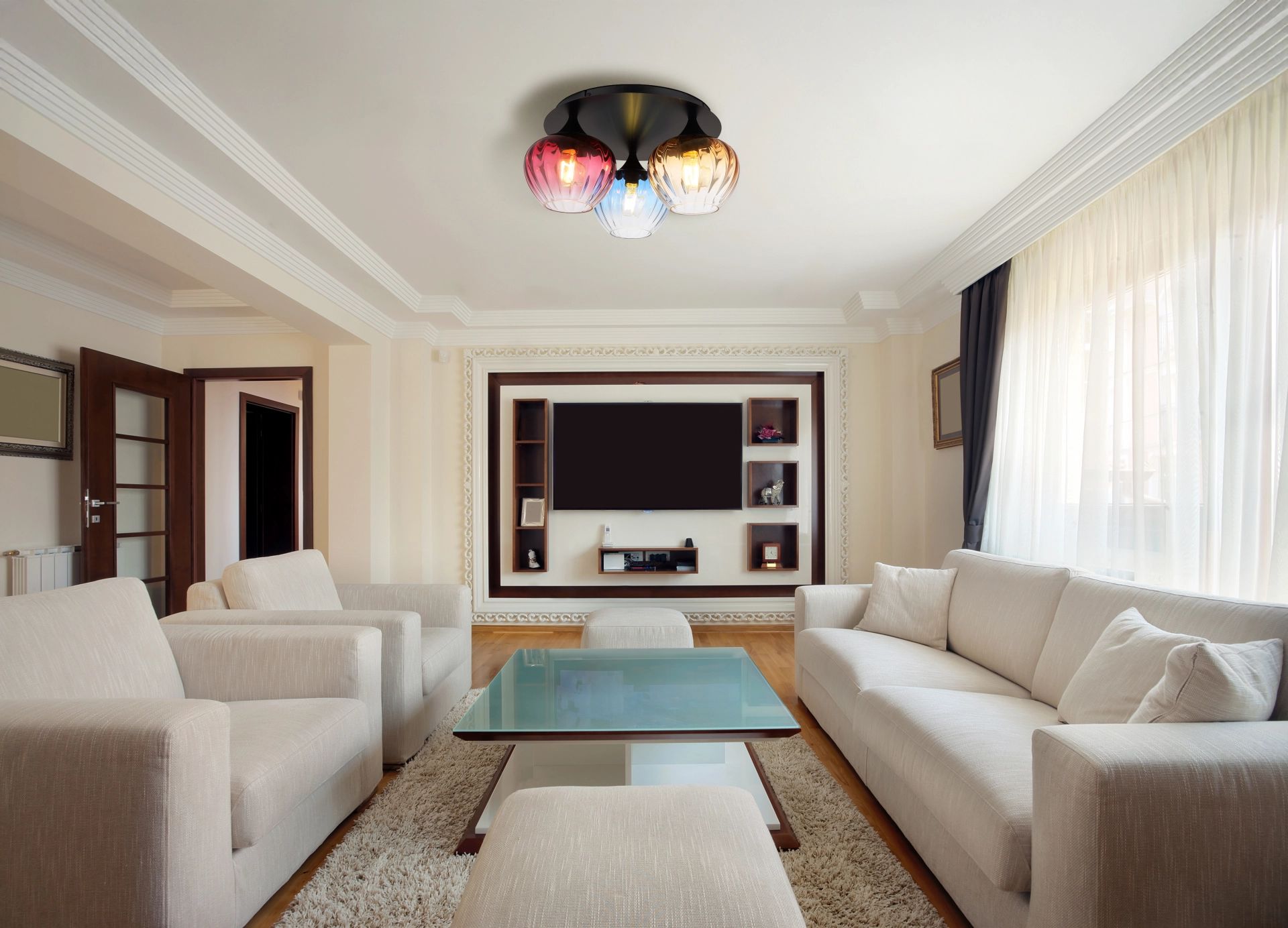 De SANDER plafondlamp brengt een sprankelende en stijlvolle sfeer in uw interieur dankzij de kleurrijke, bolvormige glazen met een prachtig kleurverloop. Met ronde lenzen in amber, blauw en rood zorgt deze lamp voor een levendige verlichting die elke ruimte oplift. Het matte zwarte metalen lichaam vormt een elegante aanvulling op het ontwerp en biedt een eigentijdse uitstraling die aansluit bij moderne woonstijlen.
