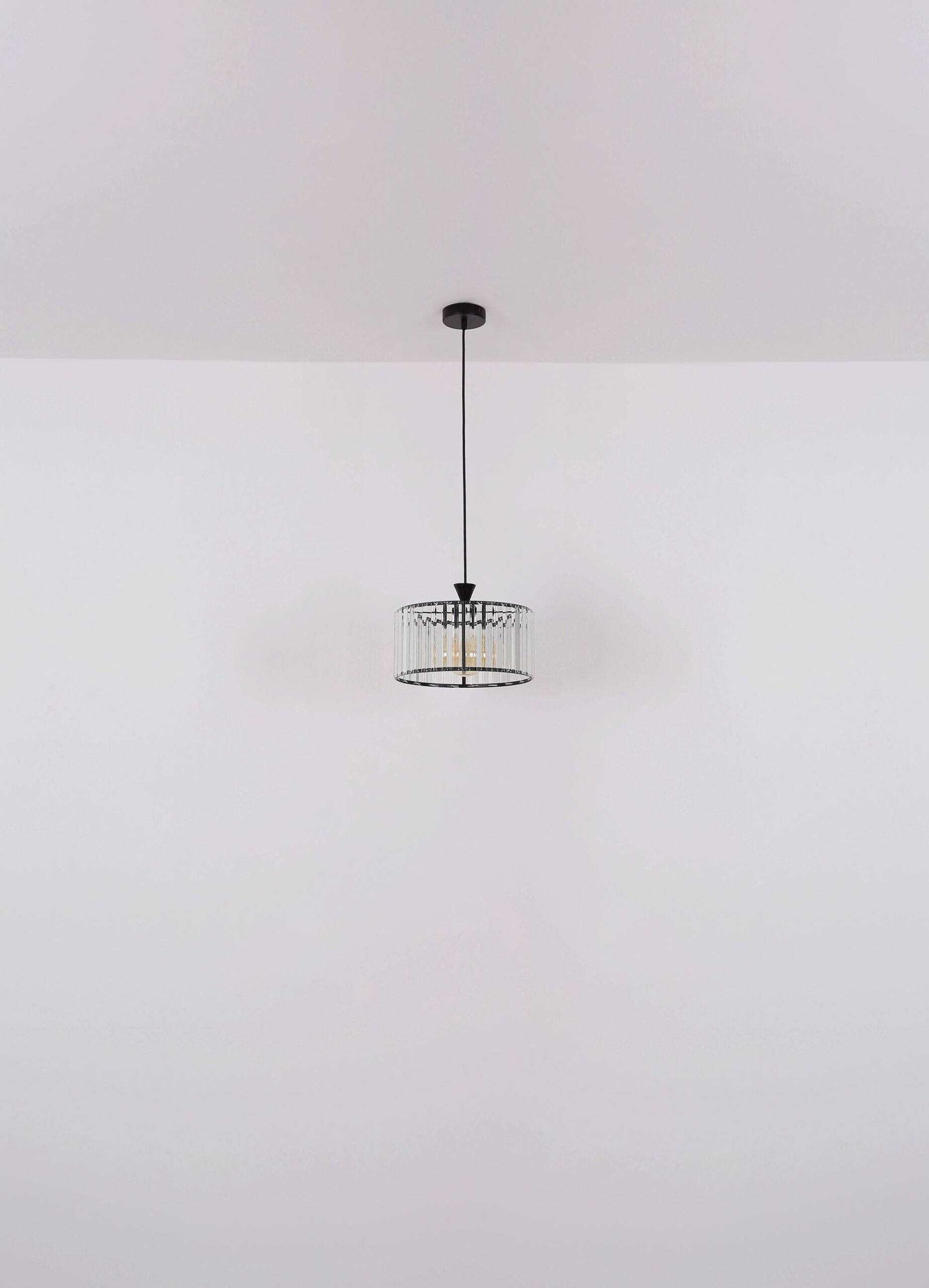 Mat zwarte hanglamp met acrylkristallen Jordana
