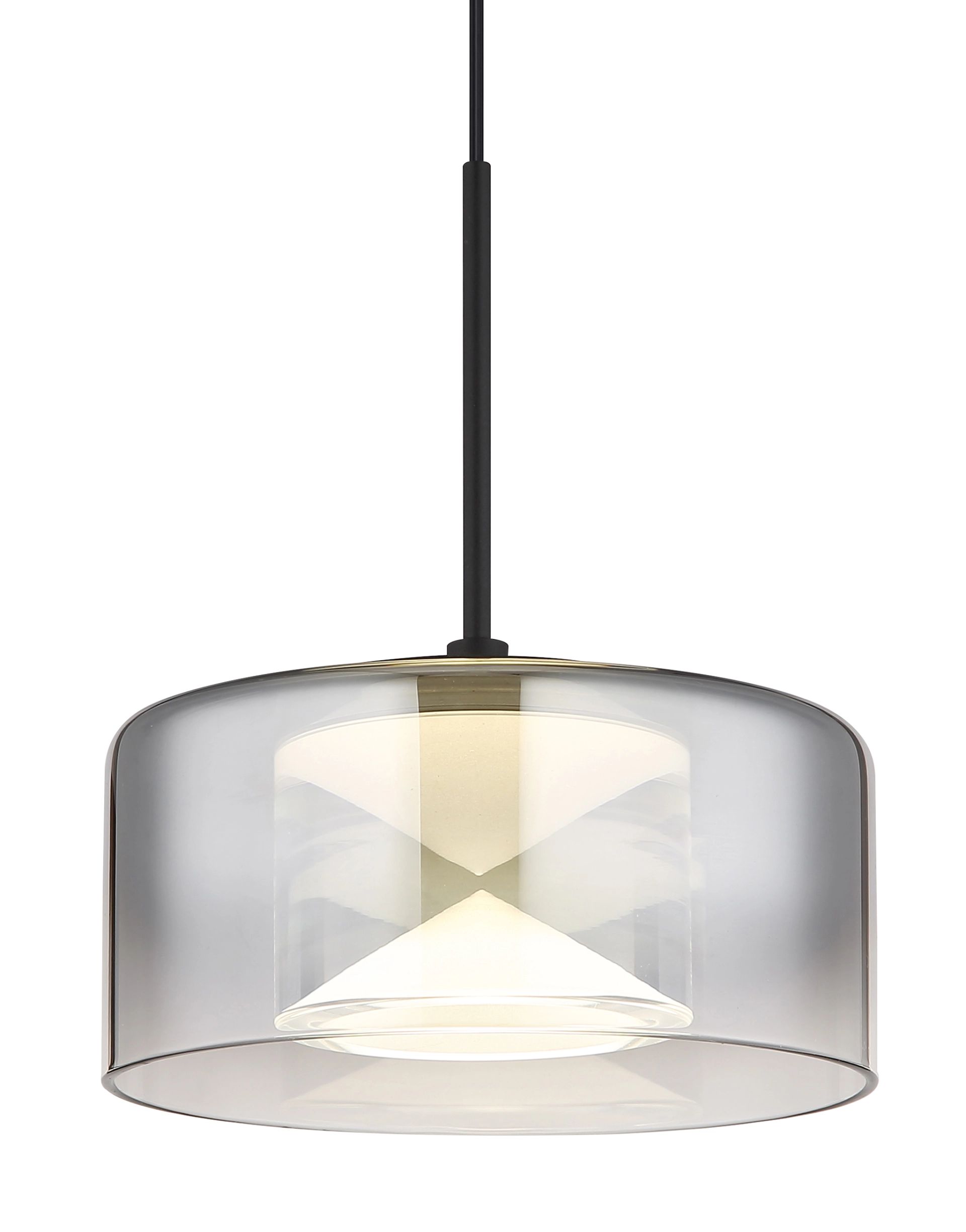 Mat zwarte hanglamp met rookkleurig glas Belinda