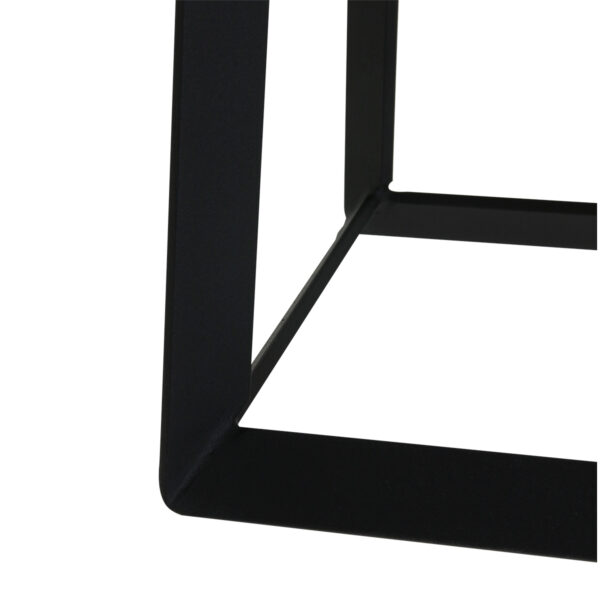 Het robuuste zwart metalen frame van de Buckley hanglamp is een industrieel statement! Twee strakke kabels dragen een rechthoekige open constructie. Bovenin zitten drie stangen met aan de middelste vier kokervormige fittingen. Het licht schijnt door de openingen vrij alle kanten op. Kies voor mooie filament of rookglas lichtbronnen. Ook in kleiner formaat voor boven je eettafel of kookeiland.