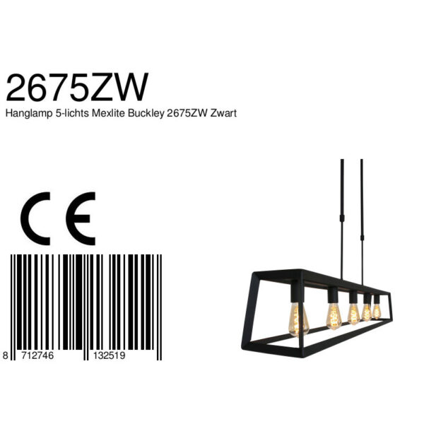 De hanglamp uit de Buckley-serie heeft een robuust open frame van matzwart metaal en biedt ruimte aan vijf E27-lichtbronnen (niet inbegrepen). Dankzij de open constructie wordt het licht vrij verspreid in de ruimte. De lamp is in hoogte verstelbaar tot maximaal 145 cm en heeft een breedte en diepte van 20 cm, met een totale lengte van 140 cm. Geschikt voor dimbare lichtbronnen en een externe dimmer.