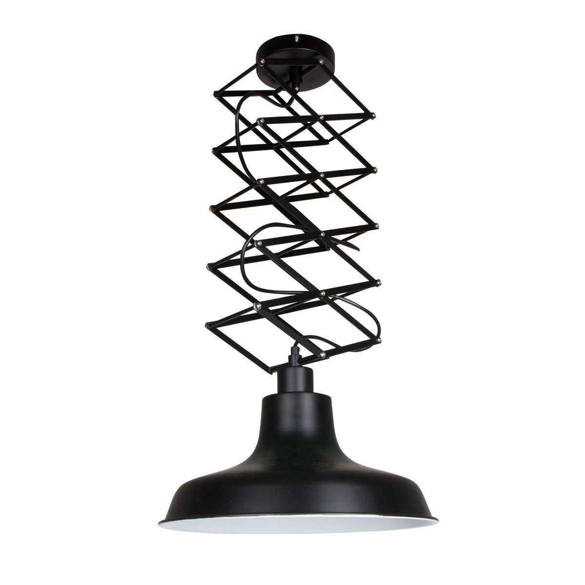 Industriële zwarte schaarlamp uit de Flex-serie, perfect voor wie op zoek is naar een unieke en functionele verlichtingsoplossing. De lamp heeft een uitschuifbaar mechanisme waarmee de hoogte tot 140 cm verstelbaar is. De kap met een diameter van 36 cm en een hoogte van 21 cm is kantelbaar voor optimale lichtregeling. Geschikt voor E27 lichtbronnen tot 40 watt en geleverd met een snoer van 110 cm.