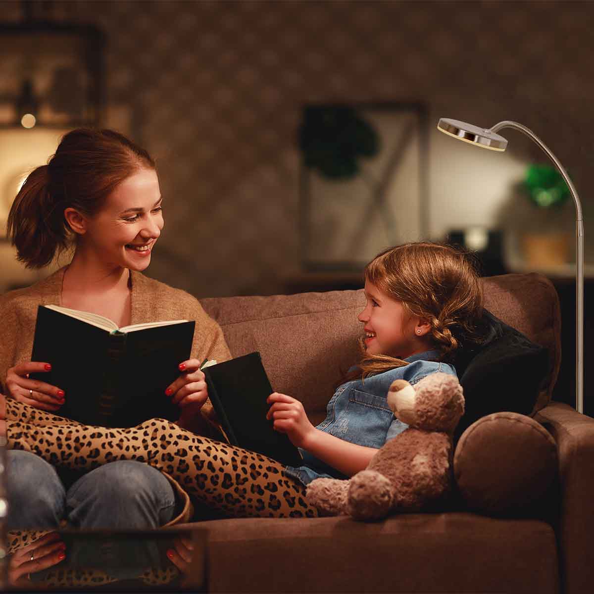 Kies voor een leeslamp van staal in een moderne zitkamer. De arm van de lamp is veertig centimeter en de lamp is voorzien van een ronde voet. De lamp is dimbaar door de ingebouwde dimmer. De arm van de staande lamp kan gedraaid en gekanteld worden. De lamp is energiezuinig dankzij de ingebouwde led-fitting.