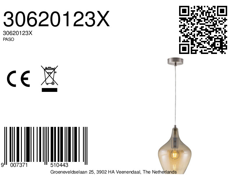 Deze hanglamp wordt geleverd zonder gloeilamp, maar is uitgerust met een E27 fitting. Hierdoor kun je zelf de gloeilamp kiezen die past bij jouw wensen voor lichtsterkte en sfeer. De combinatie van functionele verlichting en esthetische aantrekkingskracht maakt de PASO hanglamp een verfijnde blikvanger in elk interieur. Het is het perfecte designelement voor iedereen die op zoek is naar een elegante en praktische verlichtingsoplossing.