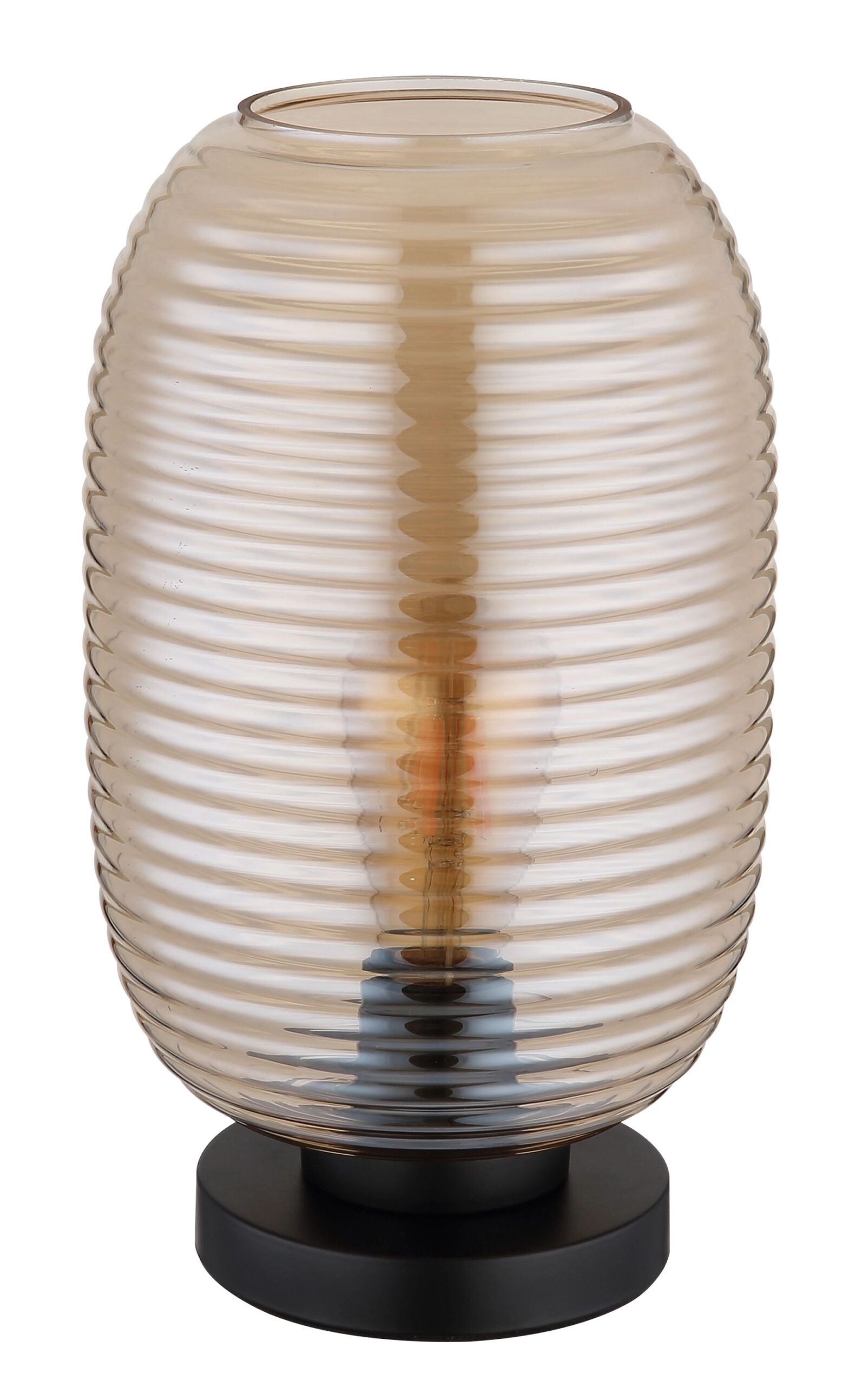 De Jefrey tafellamp is de ideale mix van modern design en tijdloze elegantie die elke kamer een opvallend accent geeft. De ronde, bolvormige kap van warm amberkleurig glas is prachtig voorzien van kunstzinnige groeven, die niet alleen visuele interesse creëren, maar ook zorgen voor een aangename en sfeervolle lichtverdeling. Met een diameter van 200 mm is deze tafellamp perfect voor gebruik op zijtafels, nachtkastjes of bureaus. Het mat zwarte metalen lichaam voegt een stijlvolle touch toe en zorgt voor een harmonieuze integratie in diverse interieurstijlen.