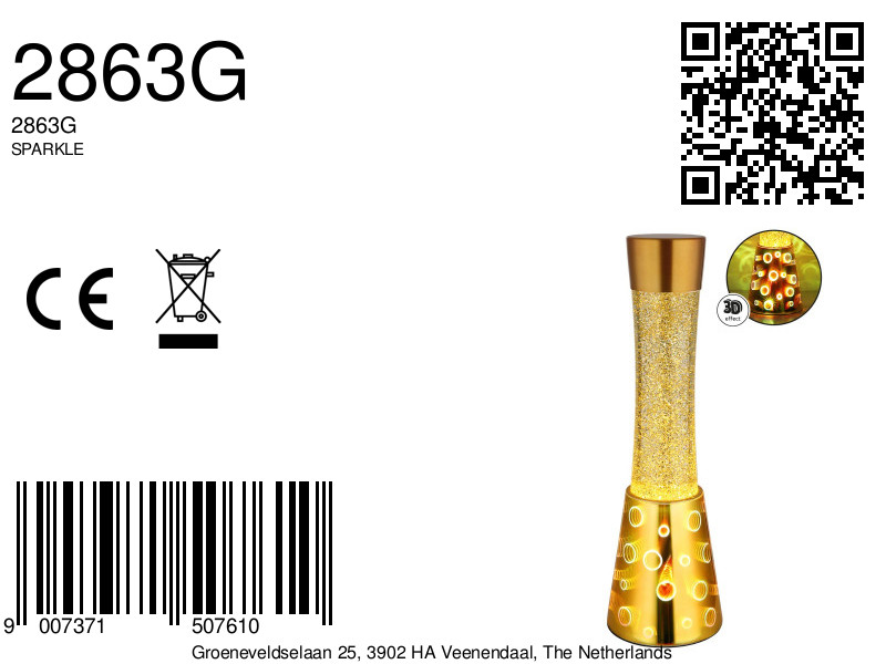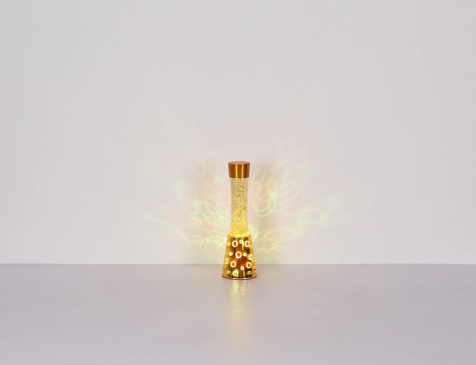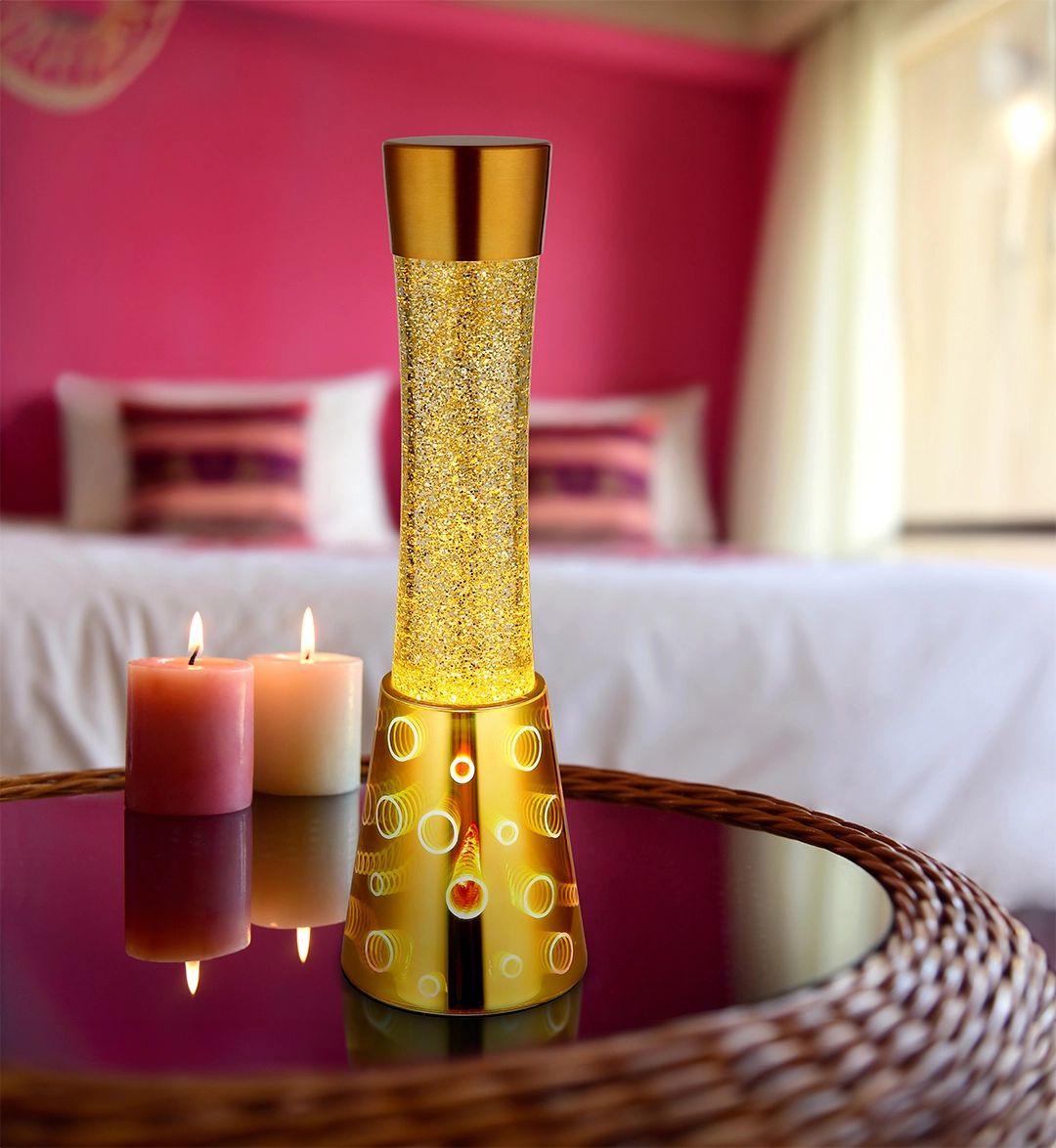 Deze geïntegreerde glitterlamp met helder vloeistof en gouden glitter creëert betoverende lichteffecten wanneer het licht aan is, waardoor een magische sfeer ontstaat. Of het nu in de woonkamer, slaapkamer of als sfeerverlichting voor speciale gelegenheden is, de SPARKLE tafellamp voegt vreugde en elegantie toe aan elk interieur. Dit product is niet alleen functioneel, maar ook een stijlvol decoratief object dat elke ruimte een extra charme geeft.