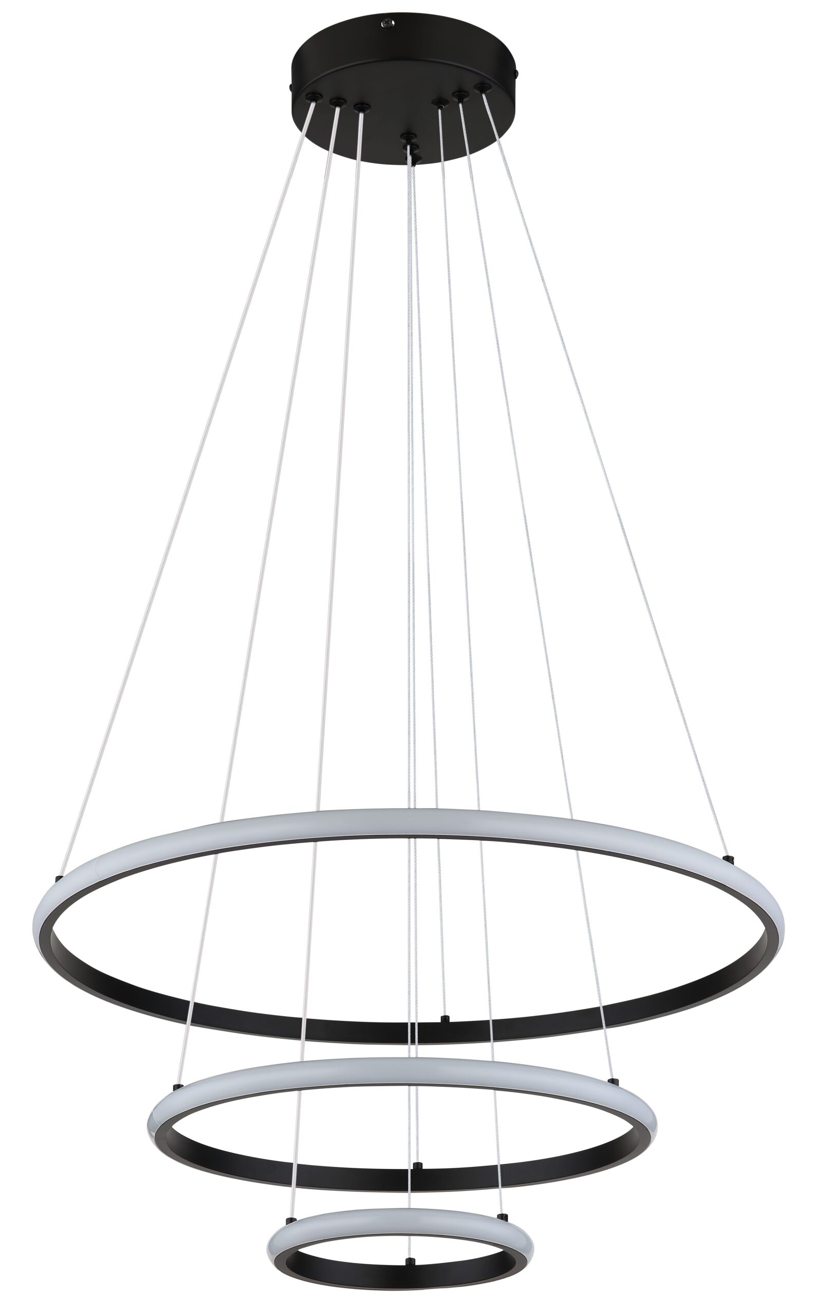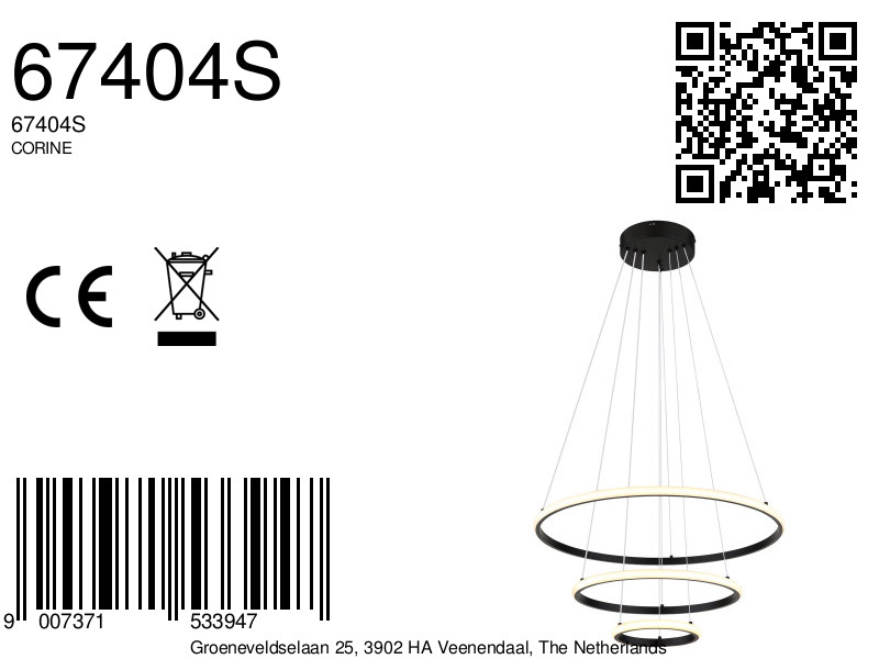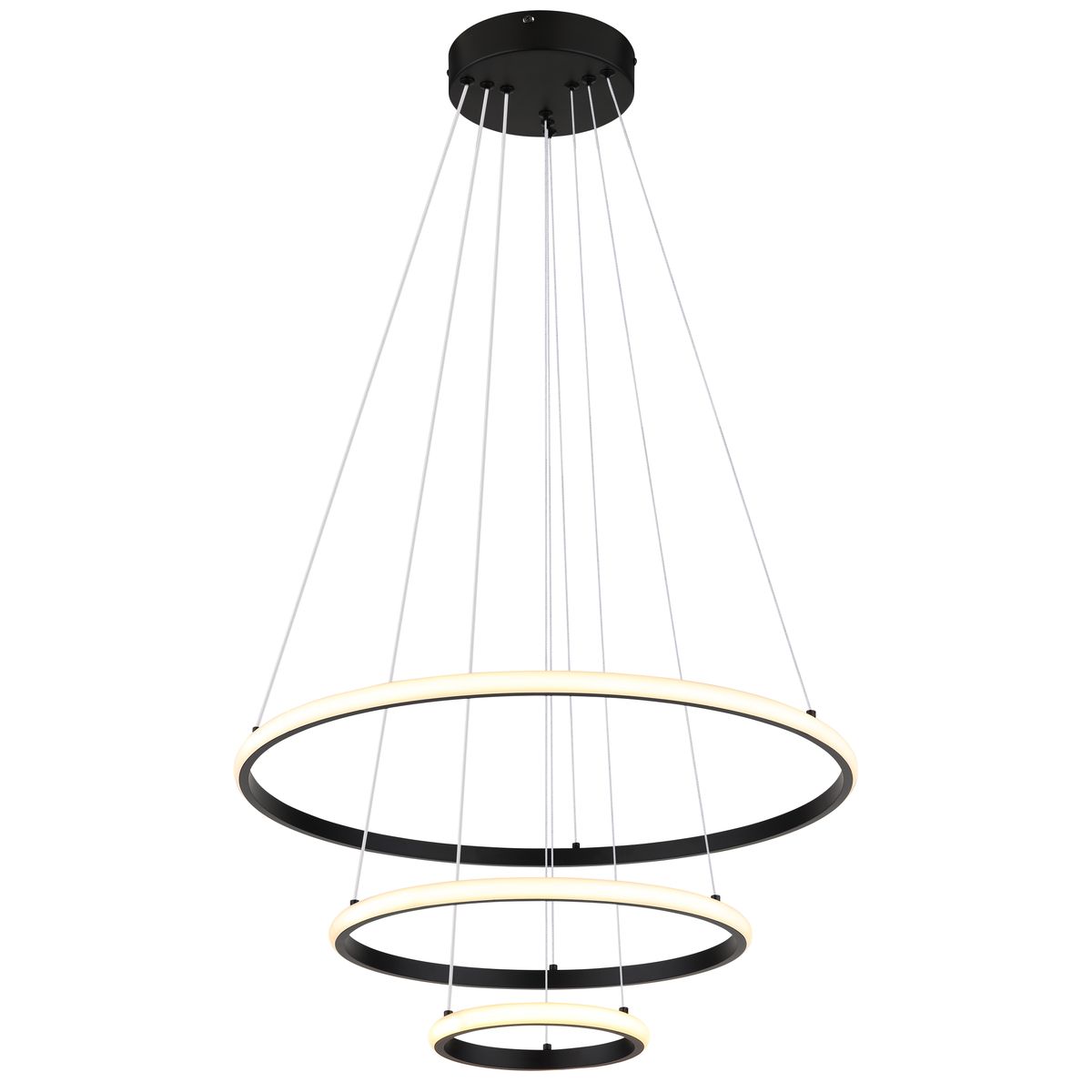 De CORINE hanglamp is een opvallend voorbeeld van modern design en functionaliteit. Met zijn ronde vorm en unieke rangschikking van drie ringen, straalt deze lamp stijl en elegantie uit. Het matte zwarte metaal zorgt voor een tijdloze uitstraling, terwijl de combinatie van de metalen lampenkap en opaalplastic zorgt voor een gelijkmatige lichtverdeling. Met een diameter van 600 mm is deze hanglamp bijzonder geschikt voor grotere ruimtes zoals woonkamers, eetkamers of hallen.