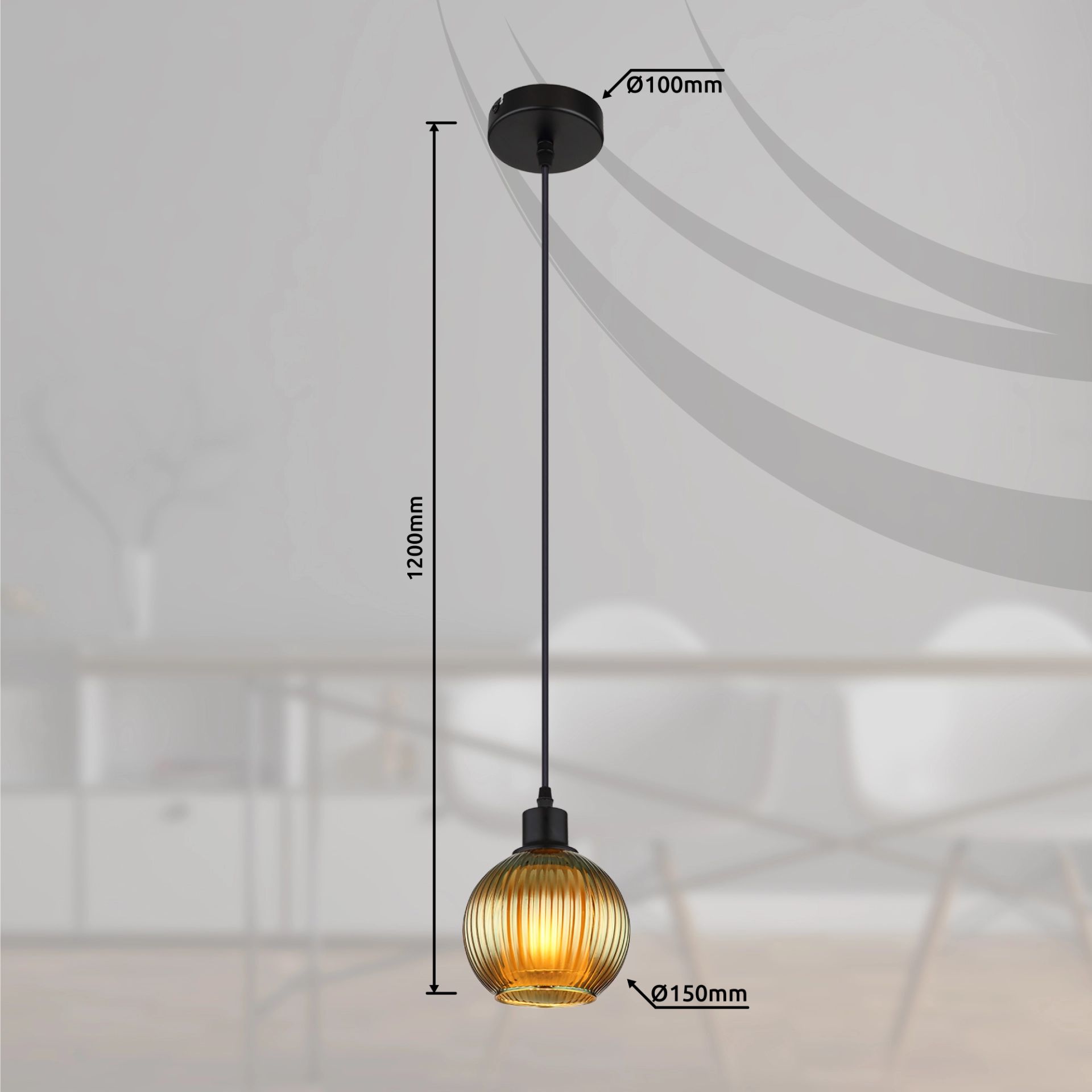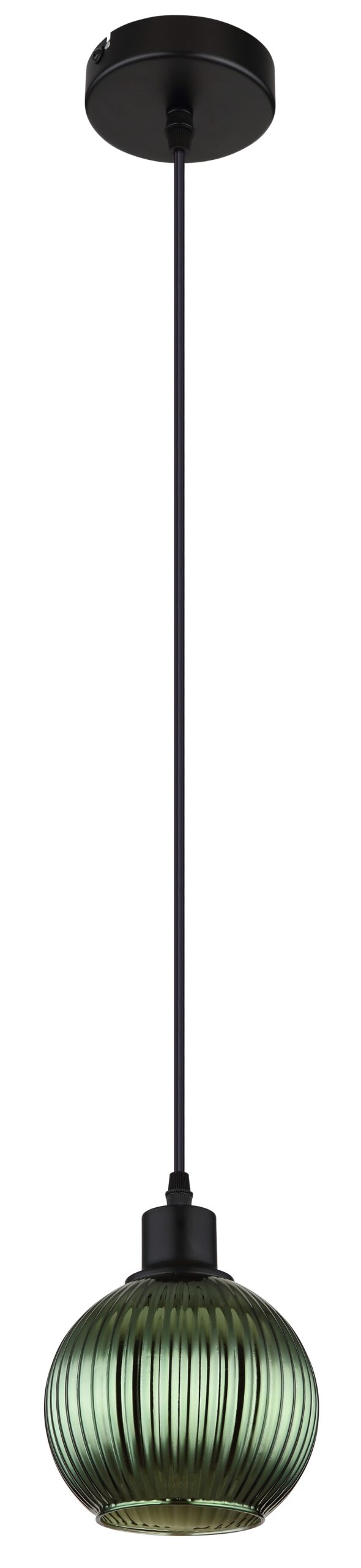 Deze hanglamp, voorzien van een ronde gegroefde glazen bol in een mooie combinatie van groen en wit, is een moderne en stijlvolle verlichtingsoplossing die elke ruimte transformeert. Het lamplichaam is vervaardigd uit matzwart metaal, wat voor een strakke en elegante uitstraling zorgt. De glazen bol heeft een doorsnede van 150 mm en is aan de binnenzijde wit, wat bijdraagt aan een zachte en gelijkmatige lichtverdeling.
