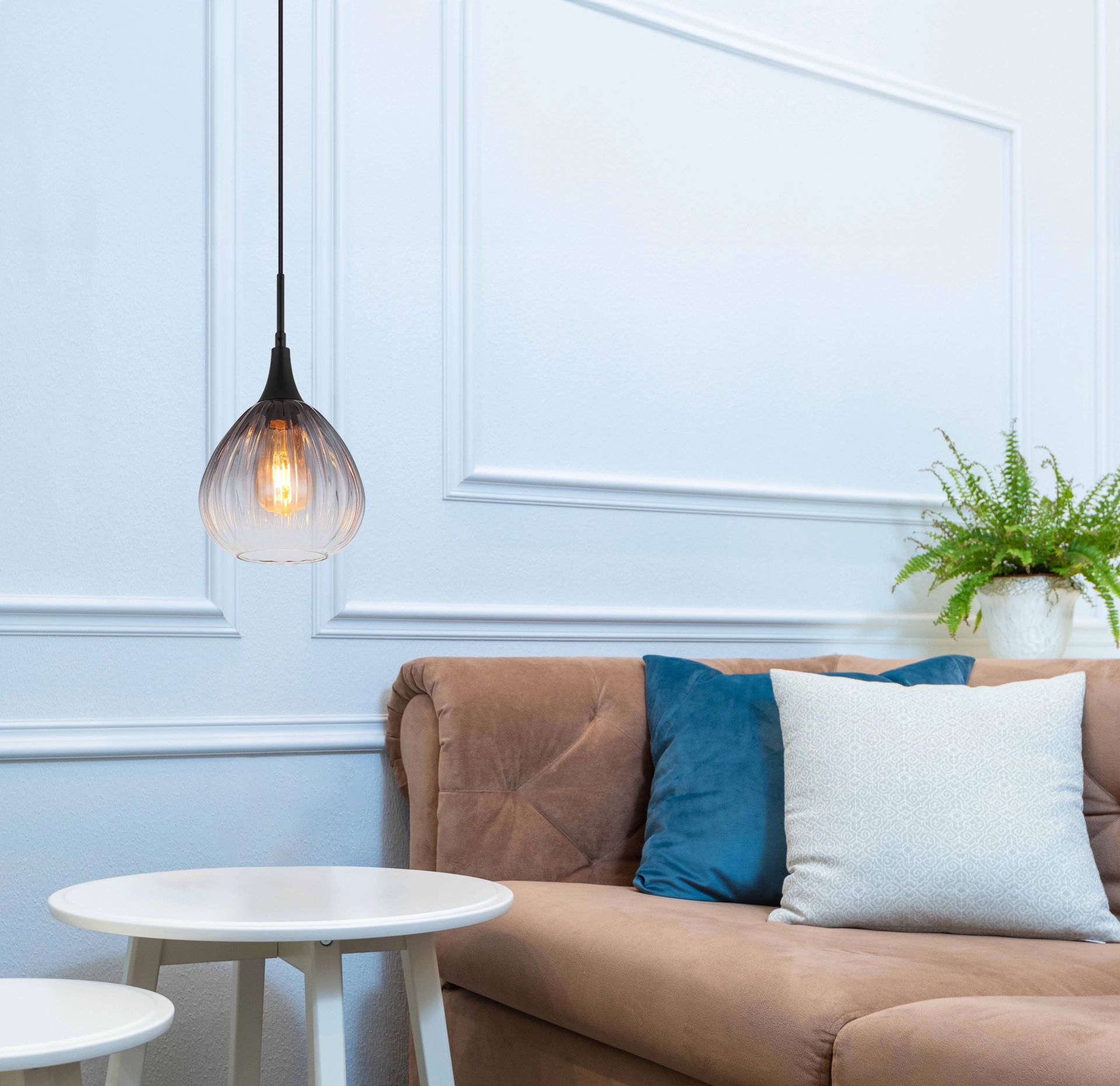 De OLSEN hanglamp is een moderne en elegante verlichtingoplossing die perfect aansluit bij verschillende interieurstijlen. Met zijn ronde ontwerp en bolvormige glazen kap, voorzien van stijlvolle groeven, creëert deze lamp een warme en uitnodigende ambiance. De zes stabiele hangarmen zijn eenvoudig te positioneren, waardoor je de lamp flexibel kunt plaatsen in uiteenlopende ruimtes, van de woonkamer tot de kantooromgeving.