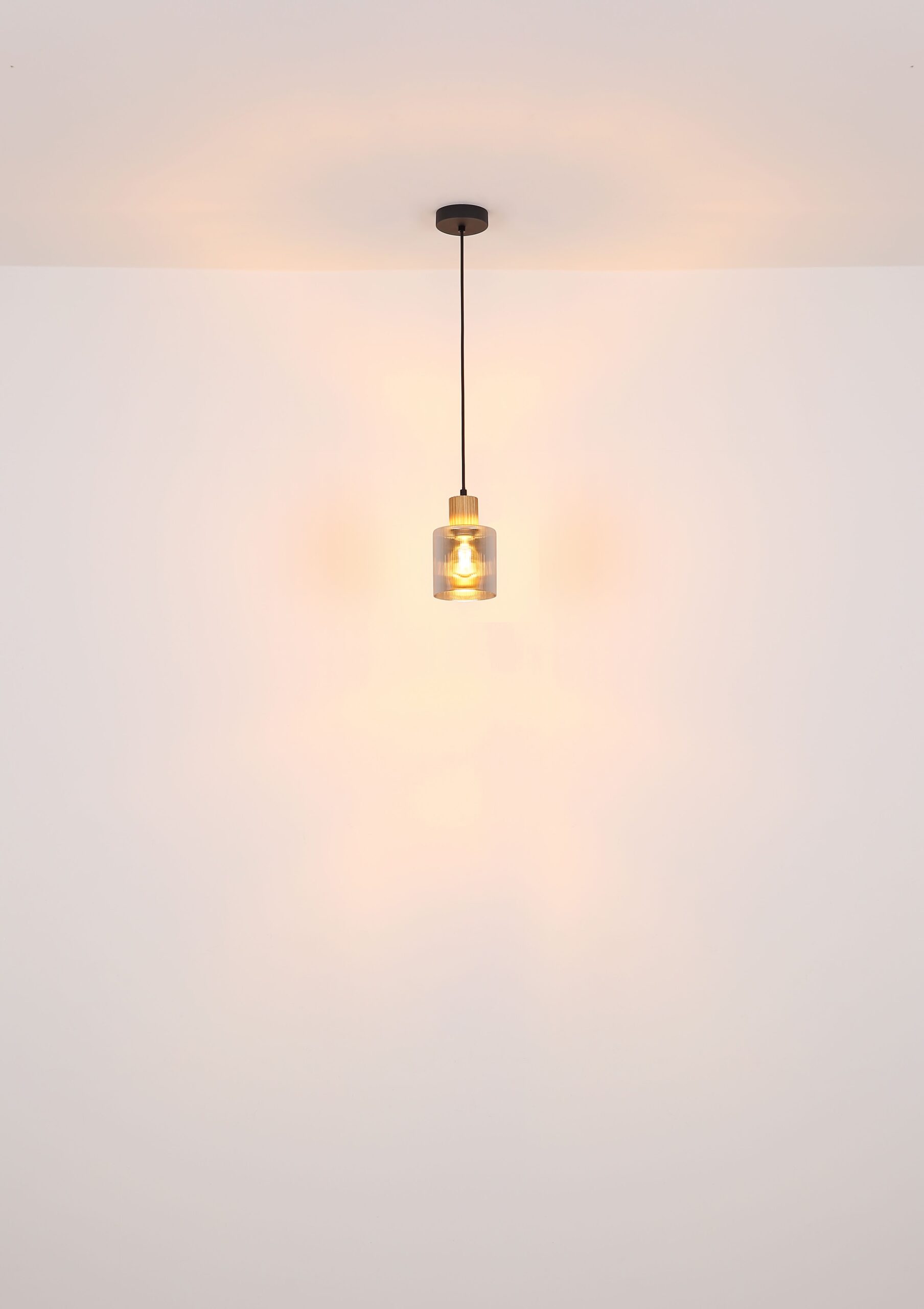 De ALEIDIS hanglamp onderscheidt zich door zijn unieke ronde ontwerp dat moderniteit en rustieke elementen naadloos combineert. Het lampenlichaam is gemaakt van hoogwaardig, mat zwart gelakt metaal, aangevuld met donkere houten accenten die zorgen voor een warme, natuurlijke uitstraling. De elegante rookkleurige glazen kap biedt aangenaam en schitteringsvrij licht, waardoor een gezellige sfeer in iedere ruimte ontstaat. Dankzij de E27 fitting heb je de vrijheid om verschillende lichtbronnen te gebruiken, wat je in staat stelt om de lichtsfeer geheel naar wens aan te passen.