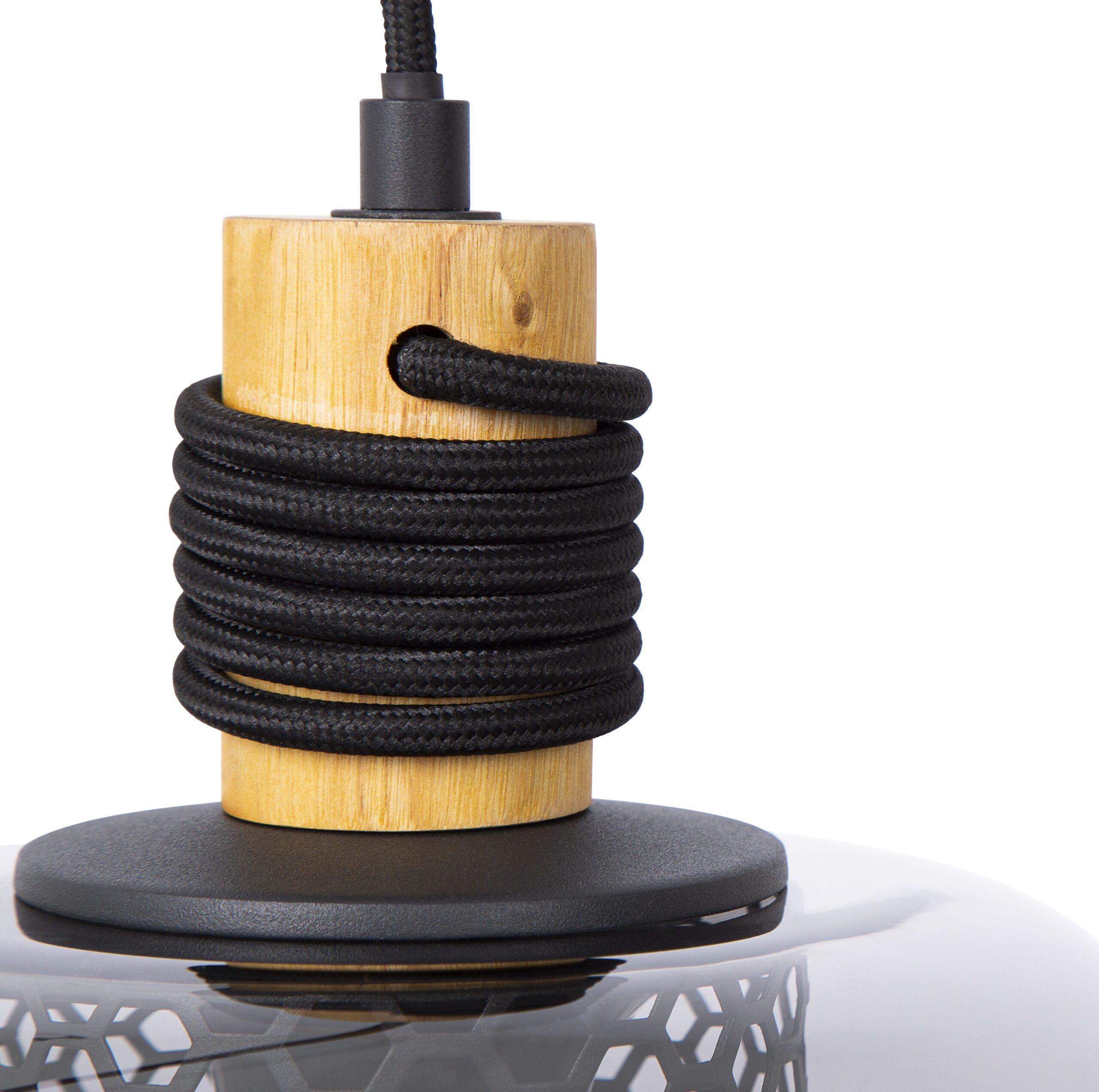De ANDO pendellamp is een prachtig voorbeeld van modern design dat elke ruimte kan verrijken. Met een diameter van 200 mm en een hoogte van 1500 mm is deze stijlvolle lamp ideaal voor het verlichten van keukeneilanden of eetruimtes. De unieke combinatie van zwart metaal, hout en elegant gerookt glas zorgt voor een eigentijdse uitstraling die perfect aansluit bij diverse interieurstijlen.