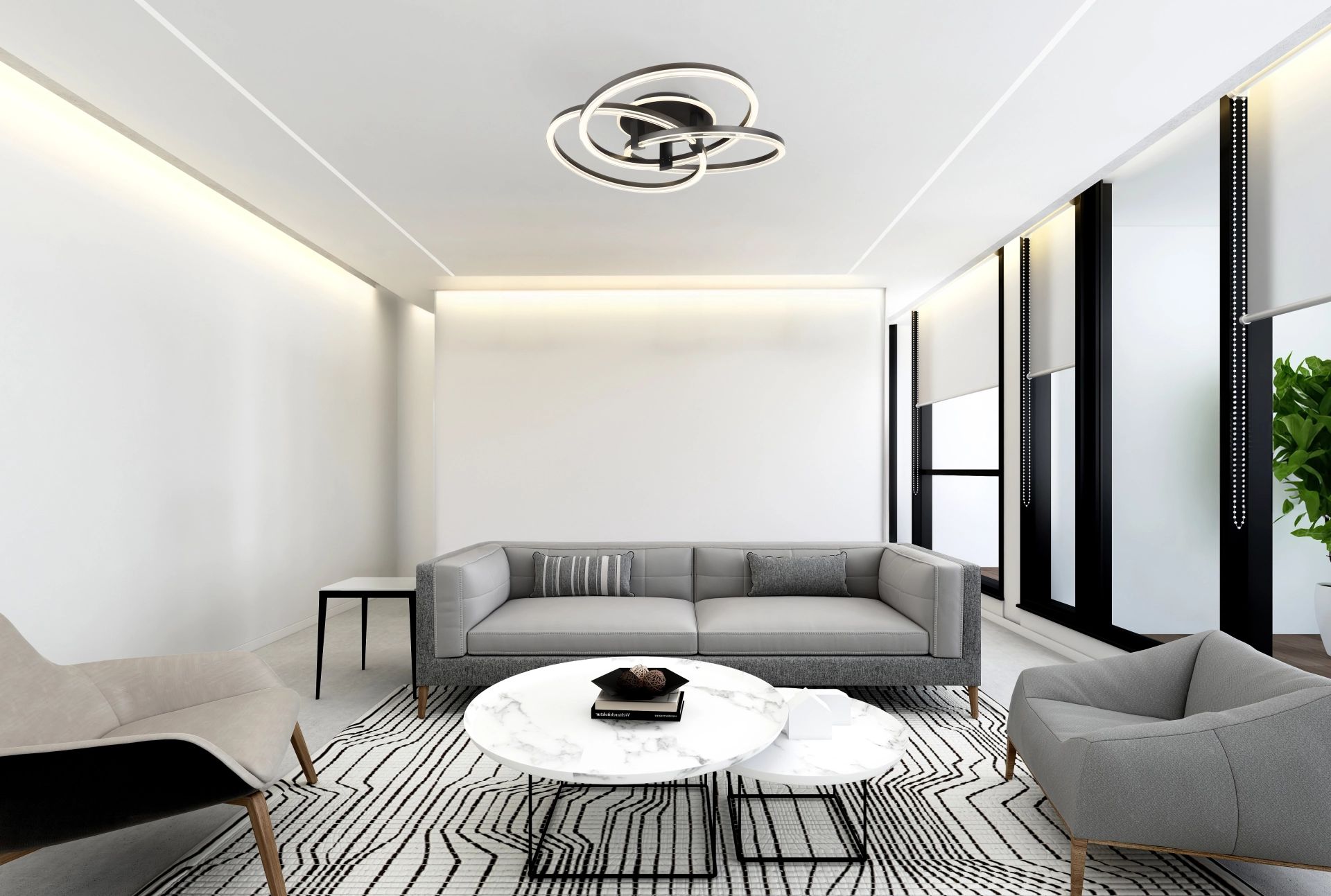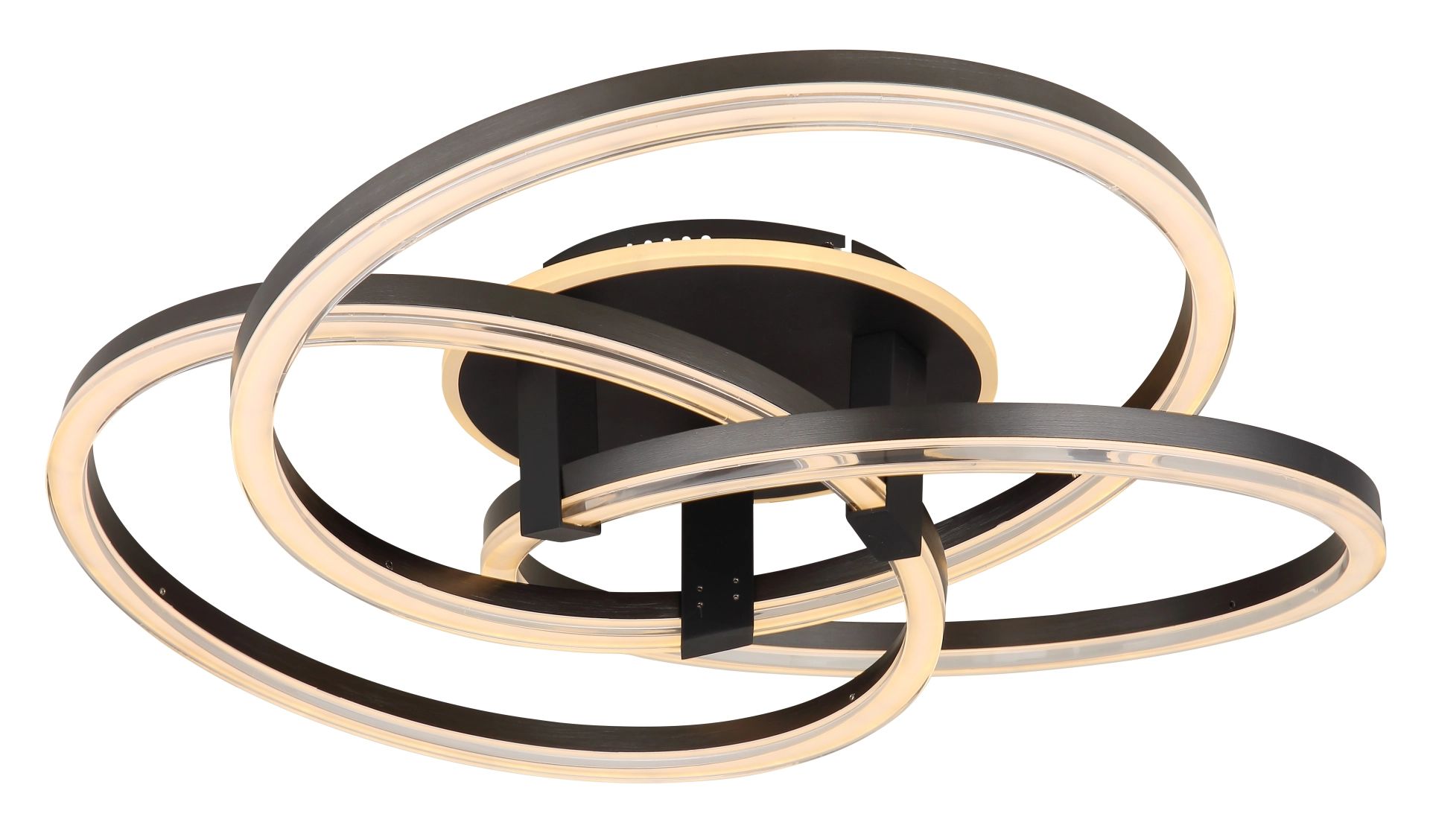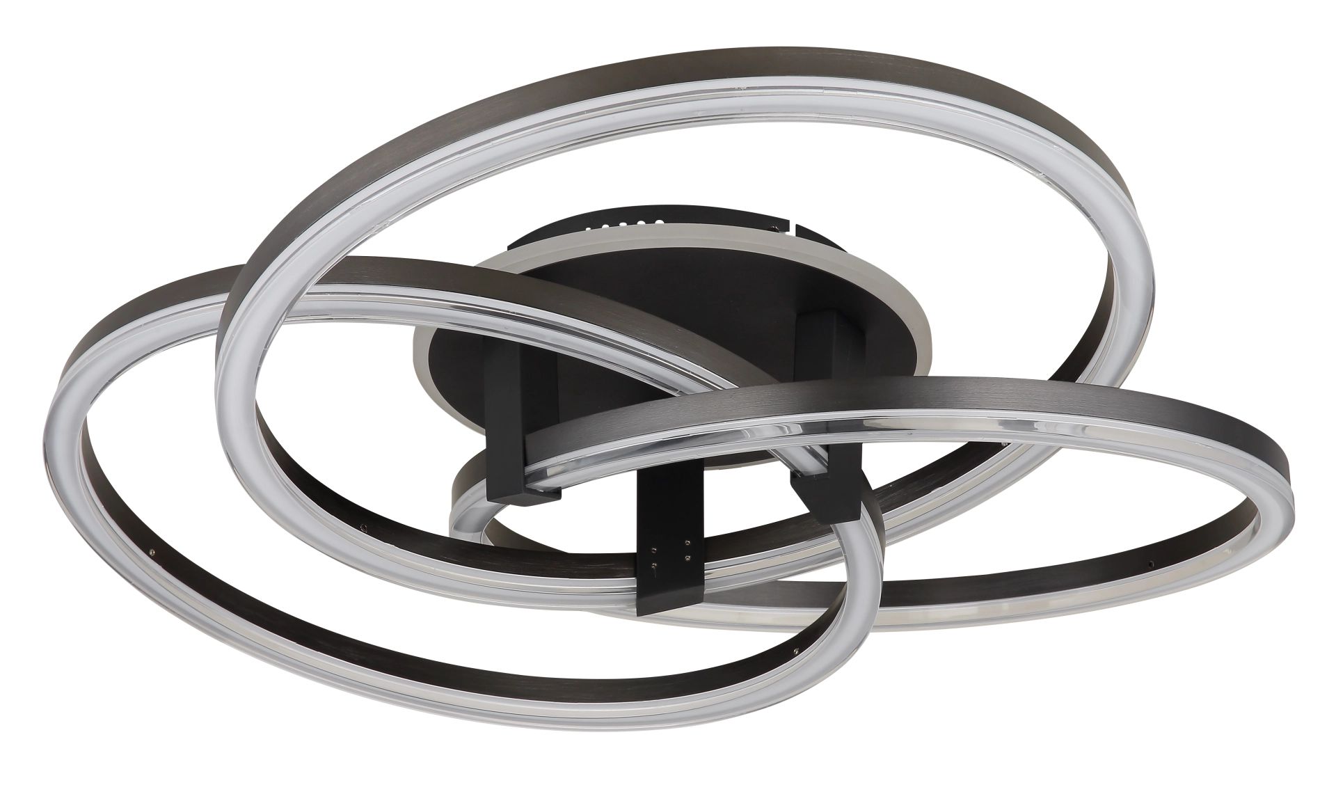 De TRIST plafondlamp biedt een perfecte combinatie van modern design en praktische functionaliteit in een elegante ronde vorm. Deze lamp, met drie verspringende ringen in een stijlvolle antraciet matte afwerking, voegt zowel verlichting als een designaccent toe aan uw interieur. Dankzij het metalen lichaam en de kap van matte geanodiseerd aluminium, samen met helder opaal acryl, geniet u van een gelijkmatige en aangename verlichting. Met een diameter van 780 mm en een indrukwekkende lichtopbrengst van 3900 lumen, zorgt de TRIST plafondlamp voor royale helderheid en veelzijdigheid.